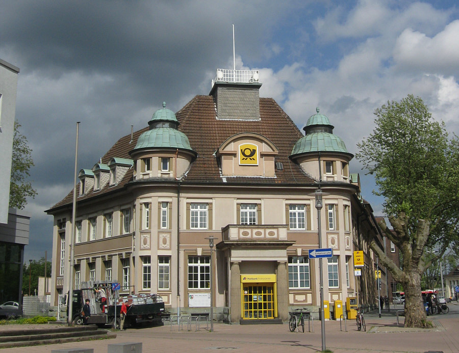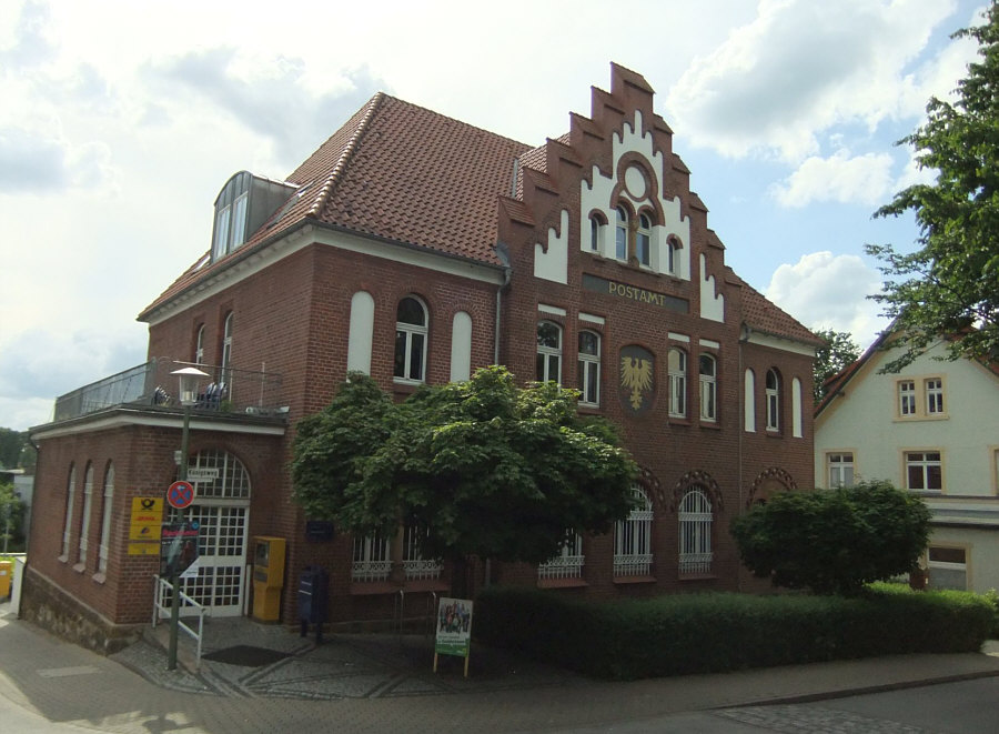 Gestern Teil 1 ... heute geht es weiter mit den Postgebäuden in Nordrhein-Westfalen ... Teil 2. ![]() Ja, ich weiß, da steht Apotheke drauf und nicht Post. Aber hier war die erste Post von Oerlinghausen drin. Sehr interessante Geschichte von damals: Die Eröffnung der ersten Oerlinghauser Apotheke fand 1831 statt. Der Apotheker Friedrich Ernst Melm stammte aus Bremen, wo seine Familie seit 1703 eine Apotheke führte. Da er als zuverlässiger und fleißiger Mann bekannt war, bekam er 1840 von Thurn und Taxis den Titel eines Postexpeditors verliehen. Er hatte jetzt zusätzlich den gesamten Oerlinghauser Postverkehr zu regeln. Zu diesem Zweck ließ er 1857 einen Anbau errichten und stellte weiteres Personal ein. Der gesamte rechte Flügel seines Hauses diente dem Postbetrieb, der hier bis 1865 abgewickelt wurde. Die für umliegenden Landgemeinden bestimmte Post wurde in der Apotheke ausgegeben oder der Apothekenknecht rief die Adressaten sonntags nach dem Kirchbesuch von der hohen Treppe vor der Apotheke aus. War der Empfänger nicht anwesend, nahmen Nachbarn den Brief mit. Trotzdem blieb eingehende Post häufig tagelang im Schaufenster liegen, bis der Adressat sich meldete. 1865 wurde die Post in ein anderes Gebäude verlegt und 1905 ... ![]() ... wurde dieses rote Backsteingebäude als Dienstgebäude der Reichspost errichtet. Bis 1995 war hier der Sitz der Post. ~~**~~ ![]() Die ehemalige Post vom Mönchengladbacher Stadtteil Wickrath. Zu finden in der Poststraße ;). Ein zweigeschossiger, klassizistischer Eckbau mit einem Walmdach. ~~**~~ ![]() Den Ort, in dem dieses ehemalige Postgebäude steht, verbinden viele mit der Post ... wir sind hier in Bethel (Stadtbezirk Gadderbaum in Bielefeld). Die bekannte Briefmarkenstelle der "von Bodelschwinghschen Stiftungen Bethel" ist und war allerdings nicht hier drin, sondern in einem Gebäude in der Nachbarschaft. Diese Stiftungen sind 1867 als Einrichtungen zur Betreuung von hilfs- und pflegebedürftigen Menschen und von Menschen mit geistigen und körperlichen Beeinträchtigungen gegründet worden. An ihrem Stammsitz im heutigen Bielefelder Stadtbezirk Gadderbaum sind im Laufe der Zeit zahlreiche Gebäude entstanden, die einen eigenen Stadtteil bilden, darunter das hier gezeigte ehemalige Postamt, heute Botenmeisterei. Das Gebäude des Postamtes wurde um die Jahrhundertwende erbaut. Seine architektonische Erscheinung gilt als ein gelungenes Beispiel für den wilhelminischen–historischen Nutzgebäudebau jener Tage. Postämter dieser Bauart entstanden in allen kleinen, mittleren und größeren Städten. Das alte Postamt ist nun Sitz der Botenmeisterei, einer Bethel-internen Post mit Arbeitsplätzen für kranke und behinderte Menschen. In diesem Haus ist auch noch ein Post-Shop zu finden. ~~**~~ ![]() 1907-1910 wurde dieses Gebäude im Stil des Historismus auf dem Bahnhofsvorplatz von Gelsenkirchen erbaut. In den 1980er Jahren wurde das Gebäude restauriert und einem neuen Zweck zugeführt. Denn seitdem ist dort das Verwaltungsgericht Gelsenkirchen drin. ~~**~~ ![]() Die alte Post von Drensteinfurt im Kreis Warendorf. Das Fachwerkbürgerhaus wurde 1647 errichtet und hatte für die damalige Zeit eine beachtliche Größe. Zunächst diente es als Lagerhaus und Getreidespeicher. Zusätzlich gab es bereits einen Wohnplatz im Gebäude. Von 1850 bis 1917 diente es als Poststation, dort wurden die Postkutschen und Pferde untergestellt. In den Jahren 1976 bis 1980 wurde es umfassend saniert und wird nun für Ratssitzungen, Trauungen oder Ausstellungen genutzt. ~~**~~ ![]() Und hier ist immer noch die Post drin ... wir sind in Wanne, einem Stadtteil von Herne. 1912-1914 im neoklassizistischen Stil erbaut. Das war Teil 2 einer kleinen Reise zu 12 Postämtern in Nordrhein-Westfalen. Ganz per Zufall bin ich in diesem Bundesland gelandet. Vielleicht mache ich mal irgendwann in einem anderen Bundesland weiter. |