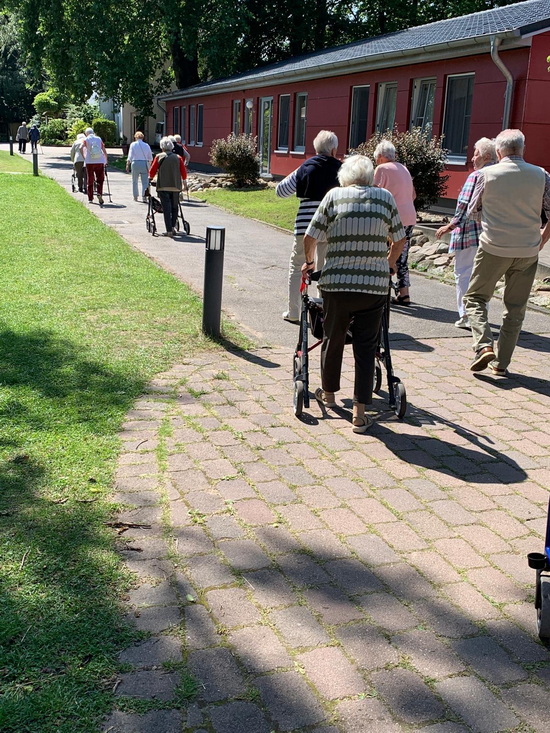 Kalenderblatt unterwegs Heute Der Gehwägelchen-Ausflug an die Ostsee Linerle war dabei, schreibt und zeigt: Das ist eine jährliche Aktion der Stadt Lübeck für die Sozialverbände AWO, DRK und Caritas für Hochbetagte und Senioren mit Behinderung. Morgens sammelt ein Bus die Senioren im Stadtgebiet ein und holt sie am Nachmittag nach dem Kaffee wieder ab. Sehr schön für alte Menschen, die nicht mehr allein verreisen können. "Reisen ohne Koffer - Ferien vor der Haustüre" ist das Motto. Das erste Ziel ist das ... ![]() ... ein Seminarhaus und Ferienzentrum. ![]() Wir sind im Lübecker Stadtteil Travemünde ... im Ortsteil Brodten. ![]() Ein alter Walnussbaum erfreut den Betrachter. ![]() Und nun geht das Wettrennen los ;). ![]() Gut gefüllter Parkplatz ... ![]() ... ja es herrscht ... ![]() ... akute Parkplatznot ;). Hier gibt es wunderschöne reetgedeckte Bauernhäuser: ![]() ... und eine tolle Rosenmauer: ![]() ![]() ![]() ![]() ![]() Pferde gibt es hier auch ... ![]() ... und Schafe: ![]() Nun werden die Rikschas vorbereitet ... ![]() ... wer will, darf sich damit fahren lassen. Jeweils 2 Personen hatten vormittags und nachmittags die Möglichkeit, damit zu fahren bzw. sich fahren zu lassen. Das sind E-Rikschas ... die aber nicht von selbst fahren, hinten sitzt ein Fahrer, der in die Pedale treten muss. Dann gehts ans Meer ... ![]() Am Brodtener Steilufer entlang mit herrlichem Blick auf die Ostsee. ![]() ![]() ![]() ![]() ![]() ![]() ![]() ![]() Zurück geht es durch den Wald: ![]() Ein schöner Tag geht zu Ende ... und einige Menschen wurden damit glücklich gemacht. |