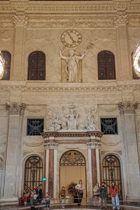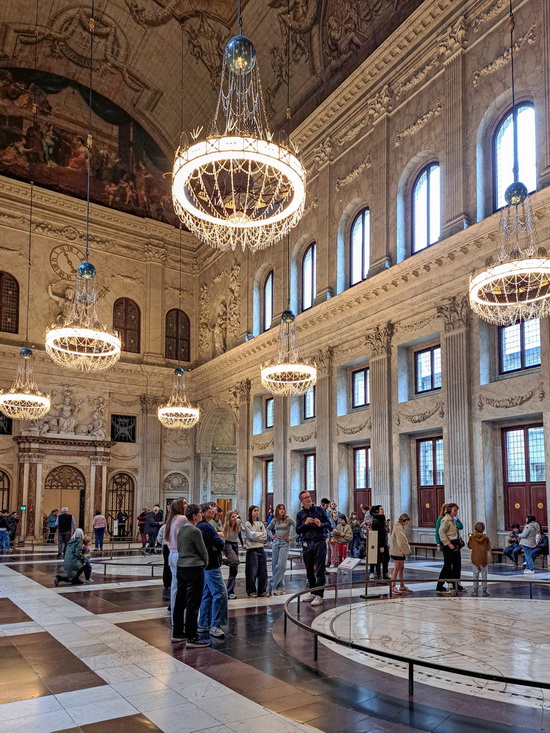 ![]() Tag 3, Teil 1 (Tag 1 gabs hier, Tag 2 Teil 1 hier, Teil 2 hier) Schpatz zeigt und schreibt: Heute regnet es. Das ist aber nicht schlimm, denn wir haben Karten für den Königspalast. ![]() 150 Jahre lang war dieses Gebäude ein Rathaus und damit die Verwaltungszentrale von Amsterdam. 1806 beschloss Louis Bonaparte, der Bruder des französischen Kaisers Napoleons, dass dieses Gebäude sein Palast werden sollte. Seither ist das ehemalige Rathaus Amsterdams der Königlicher Palast ("Het Koninklijke Paleis" oder auch "Paleis ob de Dam"). Als erstes kommen wir in den Bürgersaal. ![]() ![]() Atlas mit der Weltkugel. ![]() Über dem Eingang, gegenüber von Atlas und Justitia, sitzt die Amsterdamer Stadtjungfrau, die über diesen Mikrokosmos herrscht. ![]() So sieht das Bild an der Decke aus. ![]() Die acht großen Kronleuchter und die passenden Wandleuchten im Empirestil sind das Resultat der Umgestaltung in einen Wohnpalast. Im Bürgersaal finden heute Staatsempfänge, Galadinner und Preisverleihungen statt. Dabei wird der Fußboden von einem Teppich mit dem Motiv des nördlichen Sternenhimmels geschützt Wir können in viele weitere Räume schauen (die einzelnen Bezeichnungen habe ich mir nicht gemerkt). ![]() ![]() ![]() ![]() ![]() Blick ... ![]() ... durch das Fenster des Balkonzimmers. ![]() ![]() Bibliothek, die Bücher sind geschützt hinter den roten Vorhängen untergebracht. ![]() ![]() Ein ganz besonderer Teil des alten Rathauses befindet sich im Untergeschoss. Das Tribunal, das mit dem schönsten Bildhauerwerk aus dieser Zeit ausgeschmückt ist. Hier wurden die Todesurteile ausgesprochen. Es war sehr interessant. Es regnet immer noch und so fahren wir mit der Fähre (die sind kostenlos) zur NDSM Werft. Hier gehen wir ins Straat Museum, ein Museum für Street Art und Graffiti. ![]() Das Werftgelände misst sagenhafte 8000 Quadratmeter und verfügt über 25 Meter hohe Decken, das bietet genug Platz für hunderte von Kunstwerken. Die schauen wir uns morgen an :). [ wird fortgesetzt ] |