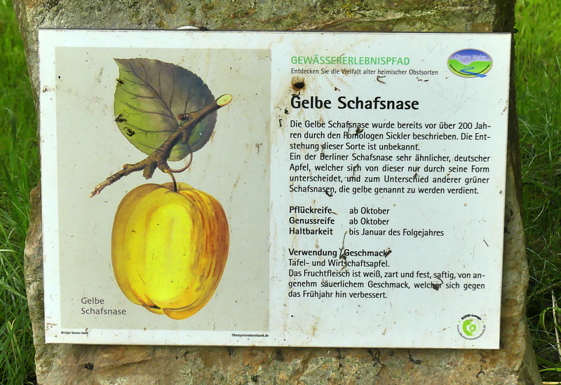 Das ![]() ... ist eine Reihe mit Apfelbäumen. Davor jeweils ein Stein mit einem Schild welche Apfelsorte das ist. Es gibt ja unendlich viele Apfelsorten ... nur merkt man im Supermarkt wenig davon. Die älteste dokumentierte Sorte des Kulturapfels in Deutschland ist vermutlich der Borsdorfer Apfel, der bereits 1170 von den Zisterziensern erwähnt wurde. Vor knapp 150 Jahren ... um 1880 rum waren weltweit mehr als 20.000 Apfelsorten (!!) in Kultur, davon allein in Preußen über 2.300 Sorten. Heute gibt es in Deutschland noch ungefähr 1.500 Sorten, von denen aber nur 60 wirtschaftlich bedeutend sind. Im Gartenhandel und bei Direktvermarktern sind derzeit nur noch etwa 30 bis 40 Sorten erhältlich – Tendenz sinkend. In den Auslagen der Supermärkte schrumpft das Angebot sogar auf nur fünf bis sechs globale Apfelsorten zusammen Nicht nur die Vielfalt, sondern auch die Qualität der Äpfel geht zunehmend verloren. Ich zeige mal ein paar der nicht so bekannten Äpfel, denn in dieser Obstbaumreihe sind mir einige neue Namen begegnet. ![]() ![]() Am Weihnachtsbaum ... interessant. Da oben steht "Pflückreife ab Oktober" ... es lagen schon jetzt, Anfang September, einige Äpfel auf dem Boden ... wir haben mal einen probiert ... ja, stimmt, die Pflückreife ist erst in ein paar Wochen ... noch nicht genießbar, der Apfel. "Leidlich guter" Geschmack ... da gibt es sicher Verbesserungsmöglichkeiten. Am besten einfach zum nächsten Baum gehen ;). ![]() ![]() Pomologe ... es gibt sogar einen eigenen Berufsstand. Interessant ist, dass der Geschmack sich gegen Frühjahr verbessert, der Apfel aber nur bis Januar haltbar ist ;). ![]() ![]() In ganz Europa verbreitet ... ich hab den Namen noch nie gehört. ![]() ![]() Gib mal der heutigen Jugend einen Apfel, der stark weinsäuerlich ist. Was für ein Gegensatz zu den auf süß gezüchteten neuen Sorten. ![]() ![]() Ich grüße alle Landespfennigmeister :). ![]() ![]() Tja, kann leider keinen Apfel zeigen, es hing keiner am Baum und es lag auch keiner darunter. ![]() ![]() Haltbar bis März, das ist doch mal gut. Oder man macht Apfelwein draus, der hält sich noch länger ;). ![]() ![]() Den Namen kannten wir ... und da haben wir auch zwei Äpfel mitgenommen. Zwei, die auf dem Boden gelegen haben ... an die Äpfel an den Bäumen sind wir bei jedem dieser Bäume nicht rangekommen. ![]() ![]() Schon ab Juli/August pflückreif ... da haben wir auch probiert. Leckerer Apfel, davon haben wir ein paar bodenliegende mitgenommen und ich esse gleich einen davon. ![]() ![]() Nicht nur geringes Aroma, auch geringe Anzahl an Äpfeln am Baum ;)). |