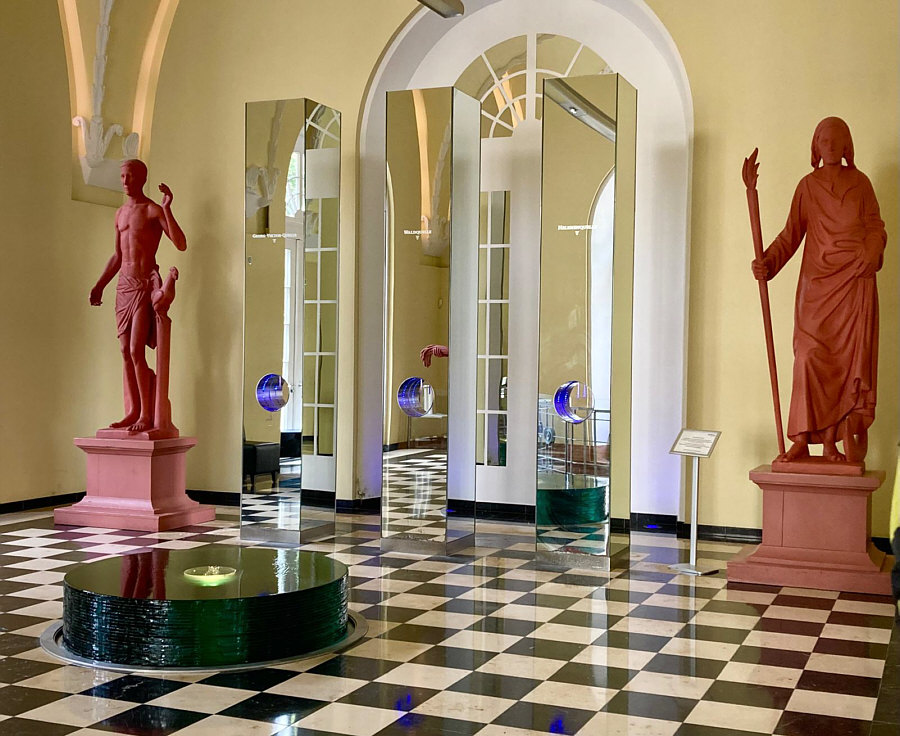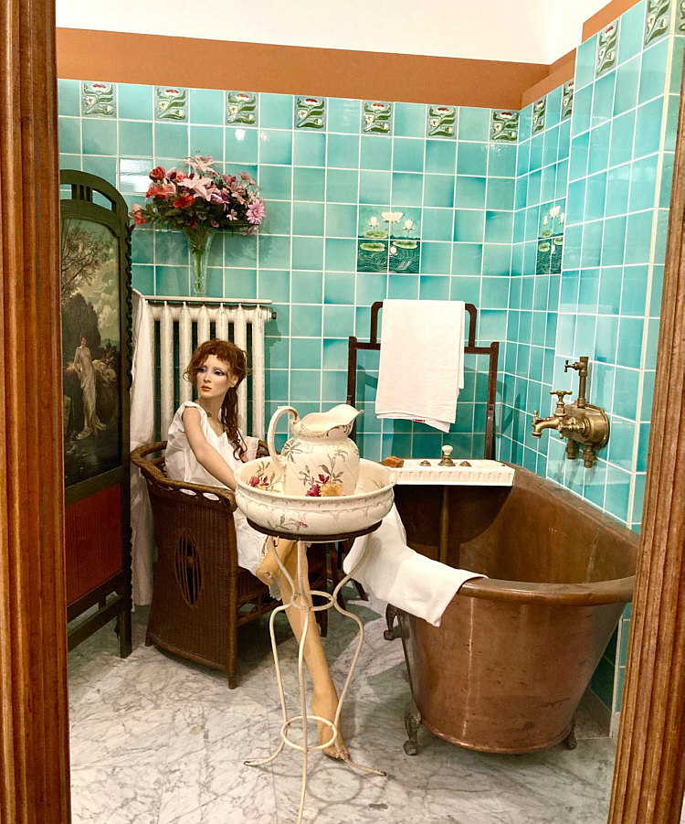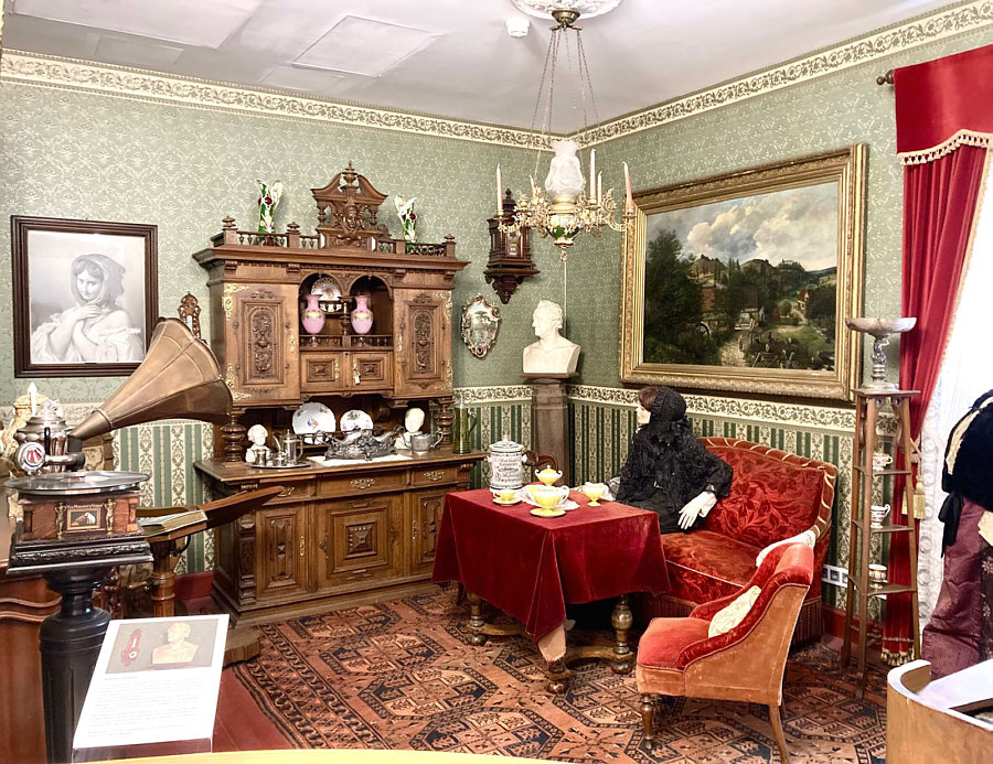 Yippie Ei Jeh O ... lasst uns reiten ... ![]() ... bis dass alle Steine, die uns den Weg zum Glück versperren, sich in Staub auflösen. Denn genau dafür ist dieses Pferd da ... das ist ein Nierensteinpferd. Hier wurden früher die Patienten durchgerüttelt mit der Idee, auf diese Weise kleinere Steine aus dem Körper hinaus zu befördern. Dieses Pferd bekommt sein Gnadenbrot hier: ![]() Das ist die Wandelhalle von Bad Wildungen. Bernadette, Beates Freundin aus Schultagen, war dort und hatte diese Bilder im Status ... ich hab das Pferd gesehen und musste es zeigen ;). In der Wandelhalle gibt es aber noch mehr ... ![]() ... das Quellenmuseum lädt zum Besuch ein. ![]() In der Wandelhalle ... ![]() ... fließt Wasser ... ![]() ... und es gibt Quellen, deren Wasser man trinken kann und jedes Wasser schmeckt anders. ![]() Wenn man dort runter schaut ... ![]() ... sieht man die Original-Quelle. Es gibt aber noch viel mehr zu sehen ... Behandlungszimmer aus früherer Zeit ... ![]() ... allerlei gesundheitliche Erinnerungen ... ![]() ... ein altes Badezimmer. Das Dingens rechts ist ein Erkameter, ein Blutdruckmessgerät. Wir baden weiter ... ![]() ![]() ... und sind ganz dankbar, dass unsere Badezimmer heute etwas anders aussehen ;). Es gibt auch zwei vollständig eingerichtete Zimmer aus alter Zeit zu sehen, ein Musikzimmer und eine Küche. ![]() ![]() Wer damals in Kur fahren wollte ... ![]() ... der stand dann vor solchen Koffern und Kisten, um diese zu packen. Packen wirs ... machen wir uns einen schönen Tag. Möge er sich wie Kur anfühlen :): |