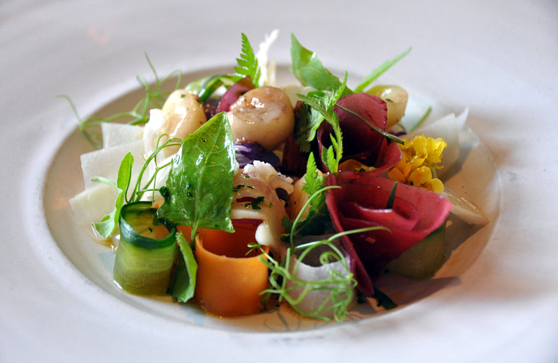 Ein Kommentar aus der schmeckts-Rubrik im Lichtblick: ![]() Normalerweise löse ich Teller mit unbekanntem Inhalt schon einen Tag später auf ... aber ich wusste ja, dass ich das dieses Mal im Kalenderblatt machen will ... ... und so wird heute dieser Teller ... 1 ![]() ... aufgelöst ... ich selbst hätte keine Ahnung, was da zu sehen ist. Griesbrei pikant oder so ... auch Ihr habt vielfältig spekuliert. Eure Vermutungen schwankten zwischen Grießnockerl, CousCous, Mandelmehl-Knödel, irgendwie, esse ich nicht, will ich nicht, sehr vorsichtig kosten ... ... und ich sag erstmal: Willkommen in der Neuen Nordischen Küche Wer mutig genug war, zu probieren, hätte folgendes gegessen: Fenchel-Apfel-Sorbet, Skyr-Schaum, gebratene Haferflocken, Äpfel, Sellerie Ich suche mal ein paar weitere Teller mit der neuen nordischen Küche: 2 ![]() Rohe Garnelen mit Seetang, Rhabarber und Kräutern 3 ![]() Gebratenes Schweinefleisch mit Frühlingszwiebeln und gegrillter Gurke 4 ![]() Toast mit Steinbuttrogen, Kräutern und Essigstaub 5 ![]() Sauerampfermousse und Hagebutten-Rote-Bete-Granité 6 ![]() Lachsrolle mit Spinat. Gelierter Lachs, umhüllt von japanischem Nori-Seetang und einem Kern aus frisch gekochtem Spinat. Garniert mit schwarzem Kaviar, roten Zwiebeln, Kerbel und einer kleinen Scheibe handgemachtem Knäckebrot mit Kümmelgeschmack. 7 ![]() Rohe Jakobsmuschel mit Petersiliengelee, Schneebuttermilch und Meerrettich 8 ![]() Roggenbrot und Hühnerhaut mit geräuchertem Käse und Steinfischrogen 9 ![]() Mark mit eingelegtem Gemüse Da ist einiges dabei, das ich mal gerne probieren würde. Sicherlich Neuland für den Gaumen, aber sehr kreative Küche. |