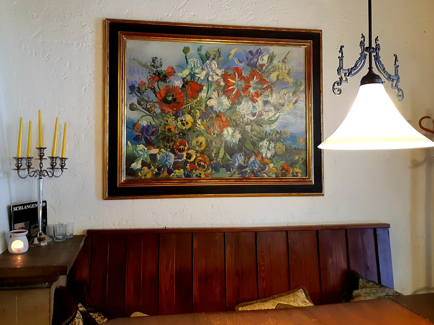 Seelenfarbentreffen Schlangenbad Bilder Teil 2 Bevor ich die Portraits zeige, schlüpfen wir zuerst mal mit ein paar Seelenfärblerinnen ins Bett ;). Hier ... ![]() ... haben Therese und ihr Mann genächtigt. Mit wunderschönem Panoramablick. Gitta und Karin v.N. (und Mann) haben in einem Nostalgiehotel übernachtet. Das war Karins Bett: ![]() ![]() Und nun kommt Gittas Zimmer: ![]() ![]() ![]() ![]() Gehen wir doch mal runter zum Frühstück: ![]() ![]() ![]() ![]() Lasst uns da mal genauer hinschauen ... auf die Spiegelung in der Metallhaube: ![]() Da sehen wir die Gitta, wie sie fotografiert. Das nur mal nebenbei ... aber ich wollte eigentlich auf etwas anderes hinaus: ![]() Seht ihr da die Oberlichter, die sich spiegeln ? Da ist ganz besonderes Glas drin: ![]() ![]() Ich hab grad spontan entschieden, dass noch ein bißchen spannend zu machen mit den Portraits der Seelenfärbler ... die zeige ich am Mittwoch ... ... denn die heutigen Bilder sind auch ein wunderbares Thema: Hotelzimmer, in denen die Seelenfärbler schon genächtigt haben. Ganz sicher gibts da auch Bilder ... schickt mir die gerne (an anghy@t-online.de), da gibts ganz bestimmt interessante Zimmer zu zeigen. Ist ja immer wieder überraschend, was einen erwartet, wenn man ein Hotel bucht. Ja, lasst uns heute mal gemeinsam übernachten ;)). Und erzählt doch mal über Hotelzimmer, die Euch in Erinnerung geblieben sind ... |