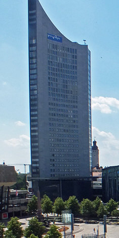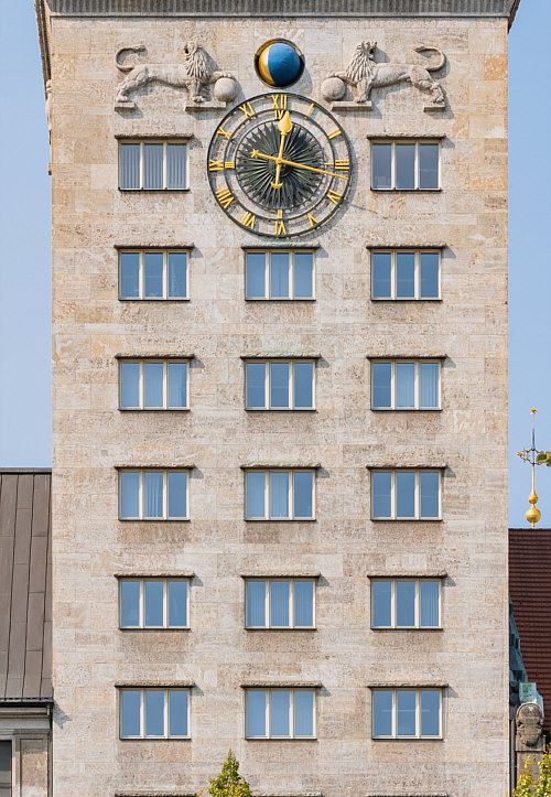 Eigentlich wollte ich heute mal wieder Postgebäude zeigen ... ... diesmal im Osten ... nachdem ich ja schon welche aus Nordrhein-Westfalen gezeigt hatte, sollte die Reise jetzt nach Sachsen gehen ... aber ... ... es kam irgendwie anders. Wir sind in Leipzig ... die Hauptpost steht am Augustusplatz. Also schaue ich mir den Platz mal an: ![]() Nun ... die Post ist hier gar nicht drauf. Denn das hier ist die Westseite des Platzes, die Post steht an der Ostseite .. von dort aus dürfte das Bild gemacht worden. Der Augustusplatz zählt als einer der schönsten Plätze in Deutschland. Und alleine auf dieser Westseite gibt es so viel zu sehen, dass ich hier hängen geblieben bin. Ich könnte zu jedem dieser Gebäude ein ganzes Kalenderblatt machen. Also musste ich mich erstmal für eines entscheiden. ![]() Ganz links steht das City-Hochhaus, das mit seinen 34 Etagen ein Wahrzeichen der Stadt und mit 142,5 Metern das höchste Gebäude Leipzigs ist. Bei seiner Fertigstellung 1972 war es auch das höchste Gebäude deutschlandweit. Aber um dieses Gebäude geht es heute nicht. Weiter rechts steht das ... ![]() ... Augusteum. Das Neue Augusteum ist das Hauptgebäude der Universität Leipzig. Es entstand im Rahmen des Campus-Neubaus zwischen 2007 und 2012. Aber um dieses Gebäude geht es heute nicht. Das Neue Augusteum grenzt an den Neubau des ... ![]() ... Paulinums ... das ist Aula und Universitätskirche St. Pauli gleichermaßen. und das geistige und geistliche Zentrum der Universität. Aber um dieses Gebäude geht es heute nicht. Rechts im Bild ist das ... ![]() ... Krochhochhaus ... und um dieses eher unscheinbare Gebäude geht es heute. Kroch ist der Name des Inhabers einer Privatbank ... für diese Bank wurde im Jahr 1927/28 diese Haus gebaut ... es war das erste Hochhaus der Stadt. Ab wann ist denn ein Haus ein Hochhaus ? Wenn der Boden eines Raumes für den Aufenthalt von Menschen höher als 22 Meter über dem Boden liegt. Ab 150 Metern sagt man dann Wolkenkratzer, das nur am Rande ... ... denn an diesen flauschigen weißen Dingern kratzt das Haus nun doch nicht. Das war damals ein Drama mit diesem Haus. Es fing harmlos an ... es gab einen Wettbewerb für den Bau. Man konnte sich nicht auf einen Sieger einigen und so gab es zwei zweite Plätze. 69 Vorschläge waren es, man entschied sich für den von Herrn Bestelmeyer. Und der hatte dieses Haus im Kopf: ![]() Das ist der 1496-1499 erbaute Uhrturm "Torre dell'orologio" am Markusplatz in Venedig. Der geisterte in Bestelmeyers Kopf rum und so entstand seine Idee eines ähnlichen Hauses für die Ausschreibung. Nur ... dieses neue Haus in Leipzig sollte 43 Meter hoch werden. Ein Schrei hallte durch die Bürger der Stadt, es gab doch eine Vorschrift, dass sämtliche Neubauten in der Innenstadt die Firsthöhe der bereits bestehenden Bauten nicht überschreiten dürfen ... und schon gar nicht ein Privatbau. Nee, das wollemernicht. Und so konzipierte der Architekt die obersten vier Etagen erstmal als Attrappe. Also erstmal 7 Geschosse fertig und 4 als "so tun als ob". Erstmal gucken, wie das dann aussieht. Das sah dann doch okay aus ... darf doch so bleiben und so wurde das dann doch 43 hohe Haus gebaut ... ... hier ein Bild von der Baustelle am 20. Juli 1928: ![]() Wir werfen mal einen Blick auf den Schilderwald: ![]() Und so wurde das Krochhochhaus das erste Hochhaus der Stadt und zugleich das erste private Bankgebäude in dieser Größe in Deutschland. Und ab sofort eines der Wahrzeichen von Leipzig. Das war auch der Beginn des Hochhausbaus in der Stadt. Zurück zum Uhrturm in Venedig ... dort sind oben auf dem Dach ... ![]() ... zwei bronzene Glockenschläger. Sowas musste natürlich auch auf das Haus in Leipzig drauf: ![]() Das war damals das größte Turmschlagwerk der Welt. Die große Glocke wird vom rechten Glockenmann zu jeder vollen Stunde geschlagen, die mittlere Glocke vom linken Glockenmann alle Viertelstunde. Die kleine Glocke kündigt den Viertelstundenschlag an und wird von innen angeschlagen. 1955 sah das Haus so aus: ![]() Was jetzt nicht ganz so kunstvoll wie in Venedig umgesetzt wurde ... ![]() ... ist die kunstvolle Uhr mit den Sternzeichen und der Löwe. Das findet sich nur ansatzweise im Leipziger Gebäude wieder: ![]() Aber Löwen und die Anzeige der Mondphasen gibt es hier auch. 1963 gab es sogar eine Briefmarke mit dem Krochhochhaus drauf: ![]() 2008 wurde das Gebäude saniert. Heute sind in diesem Haus zu finden: das Ägyptologische Institut, das Altorientalische Institut mit einer Bibliothek, das Spracheninstitut der Universität Leipzig. und das Ägyptische Museum der Universität Leipzig. Ähhm ja ... ich wollte ja eigentlich die Post zeigen ... so kanns gehen ;)). |