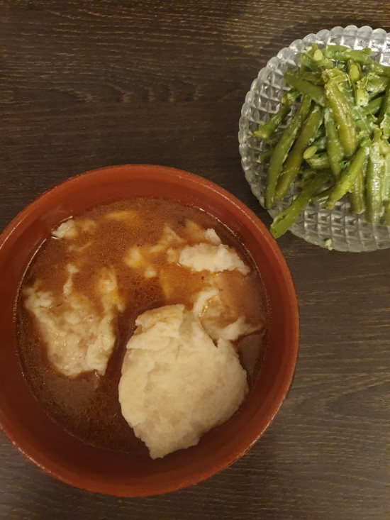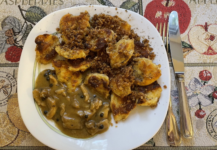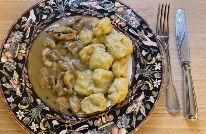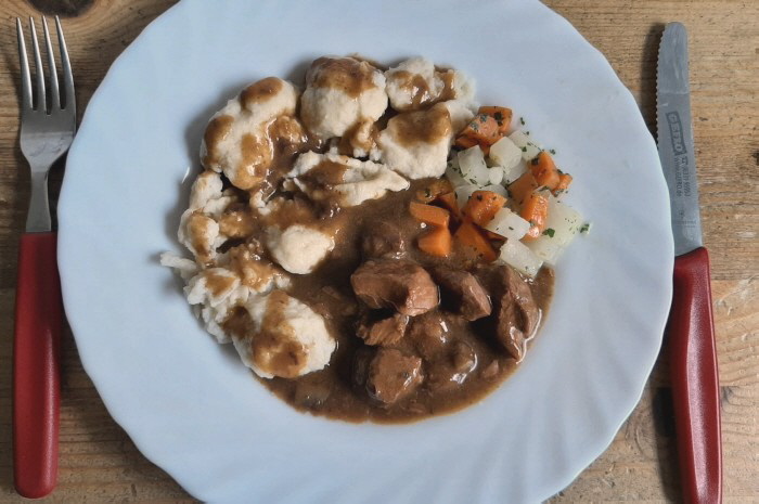 Verschiedene Worte für das gleiche Dingens: Kneppcher, Mehlknepp, Mehlklößchen, Mehlspatzen, Wasserspatzen Das Rezept dafür steht unter der Kommentarfunktion. Es stand auch im Tagebuch und es gab ja die Mitmachaktion. Heute ist also der Kneppchestag Acht Seelenfärbler haben mitgemacht ... die Bilder und Texte dazu zeige ich heute: Christa ![]() Vielen Dank für die Anregung. In Berlin sagt man Eierklößchen dazu. Da wir ja keine Spätzle machen, ist das eine andere Variante in Teig. Wir essen sie so als Ersatz für Kartoffeln, Klöße oder eben Spätzle, Aber auch in Brühe oder im Eintopf. Außerdem werden die übrig gebliebenen mit Ei gebraten. Ich habe sie heute schnell zu Gulasch gemacht und schicke Dir ein Bild. Regina aus Berlin ![]() Lieber Engelbert, ich habe gerade die Knuppersche probiert. Nach deiner Anleitung sind sie prima geworden. ![]() Die Hälfte gab es gerade bei mir zum Mittag mit Gulasch und Mischgemüse. Ich habe die Teigmenge für eine Person mit einem Ei gemacht. Ging super. Christine b ![]() Habe gleich gestern die Kneppcher = Mehlnockerl gemacht ... zum Fisolengulasch (Bohnengulasch). Da ich die Nockerl mit Buchweizen- und Dinkelmehl machte, sind sie dunkler. Mir schmecken Spätzle besser als die Kneppcher. Engelbert ![]() Einmal mit Hackfleisch-Pfeffer-Soße. ![]() Und einmal mit Zucker und Zimt. ReginaE Kreppsche habe ich zum ersten Mal gemacht. Ich schabe gerne Spätzle etwas dicker, die sind dann länger. Was auch geht, in die Masse klein geschnittene gerauchte Schinkenwurst rein und dann ähnlich wie die Kreppsche in Salzwasser gegart. Ich brate sie nochmals kurz an und dazu gibt es Salat. Es ist so etwas wie ein Wohlfühlessen :). ![]() So sehen die Kreppsche bei einer Menge von zwei Eiern aus. ![]() Und knapp die Hälfte in einer Gemüsesuppe auf einem tiefen Teller. Verwendet habe ich Rosenmehl Wiener Griesler. Chispeante ![]() Speisen mit vielen Zutaten sind für mich immer eine Herausforderung (viele = mehr als 1 Zutat). Aber ich weiß zufällig wie der Spätzleteig sein muss und die Knepp sind top geworden!!! Schnecke ![]() Hier meine Kneppches aus Dinkelmehl als Suppe... hat mich an Grießnockerl erinnert, nur dass ich da statt Milch noch etwas Backpulver und Butter reintue. Durch den Dinkel etwas "kernig", naja, Grießnocken mag ich lieber ... Oktoberfee ![]() Sie sind mir gut gelungen und haben gut geschmeckt, was für mich keine Überraschung war. Die Mehlknepp sind den fränkischen Mehlklößen sehr ähnlich. Bei Letzteren kommt in den Teig noch geröstetes Knödelbrot hinein und sie werden mit einem Eßlöffel abgestochen. Aber ansonsten die gleiche Vorgehensweise. Dazu gab es ausgelöstes und gebratenes Hähnchenschenkelfleisch in Pfeffersoße mit frischem grünen Pfeffer. Insgesamt ein gutes Gericht das ich bestimmt noch öfter machen werde. ![]() Den Rest hab ich in der Pfanne gebraten und mit Pfefferbrösel bestreut. Sind ein bißchen dunkel geworden schmecken aber köstlich. Dazu gab‘s das restliche Huhn in Pfeffersoße. Branwen ![]() Weil noch Soße von den Rouladen übrig war, hab ich heute Abend die Mehlknepp ausprobiert. Hatte ich ja noch nie gegessen. War lecker und ich kann mir vorstellen, dass sie zu Gulasch sehr gut schmecken. ![]() Und weil ich neugierig war, hab ich sie dann gleich noch mit Zimtzucker probiert. Ich wünschte, ich hätte noch heiße Kirschen dazu gehabt. Auch lecker. Hab ich bestimmt nicht zum letzten Mal gemacht.