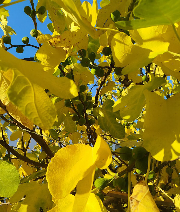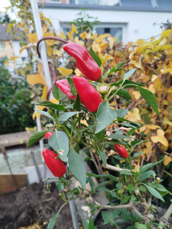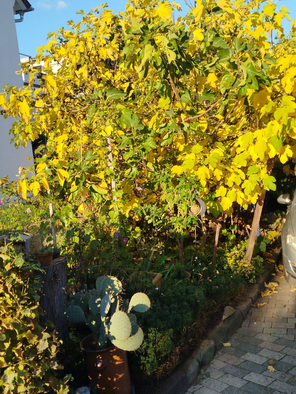 Heute "Erntedankfest bei DoroRemstal" Doro ist mal durch den Garten gegangen und hat geschaut, welche Früchte sie findet. Die Texte sind überwiegend Doro. ![]() Das sind Teile unseres riesigen Kiwistrauches, der unsere ganze Terrasse umrankt. Vor 3 Jahren hat er weit über 1000 Früchte getragen, in diesem Jahr werden es ca 300-400 Früchte sein. ![]() ![]() ![]() Die Kiwis lassen sich wunderbar lagern, dieses Jahr haben wir im Mai noch Kiwis von letztem Jahr gegessen. Die Früchte sind "haarig" und haben ein wunderbares, intensives Aroma. ![]() Die Äpfel Auf dem Tisch sind ein Teil unserer Apfelernte von unserem Apfelgrundstück. Dann gibt es noch eine Zitrone ... ![]() ... und auch Tomaten: ![]() ![]() Der Strauch mit den gelben Blättern ... ![]() ... ist ein Feigenstrauch. ![]() ![]() ![]() Momentan reift die diesjährige 2. Generation von Feigen heran. Im Juli gab's die erste Generation, bestimmt 100 Früchte, in diesen Tagen genießen wir die 2. Ernte. Eine andere Art der "Ernte" ist die, ein Kind zu bekommen und es zu begleiten. Auch da kann man auf vielfältige Arten "ernten". Und manchmal davon auch etwas in den Garten stellen: ![]() Diesen Fliegenpilz hat unsere Tochter in Kinderjahren gebastelt, er steht seit 30 Jahren in unserem Vorgarten. ![]() Dann gibt es auch noch eine kleine Schildkröte aus Ton, die unsere Tochter als Kind gebastelt hat. ![]() In unserem Garten am Haus wachsen auch ein paar rote, sehr scharfe Chilischoten. Ich kann sie nicht essen, mein Mann kann nach dem Genuss der Schoten eine gewisse Zeit nicht mehr reden und ist sehr ruhig ... ... ihm verschlägt es immer kurzfristig nach dem Genuss die Sprache! ;). |