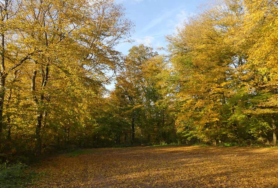 Wir laufen hier entlang ... ![]() ... und kommen an diesen Platz: ![]() Da vorne ... ![]() ... steht ein hölzernes Hinweisschild. ![]() Was da drauf steht, habe ich retuschiert, denn heute ist Ratetag im Kalenderblatt. Was könnte wohl auf diesen Schild stehen ? Wohin mag uns dieser Pfeil führen ? |