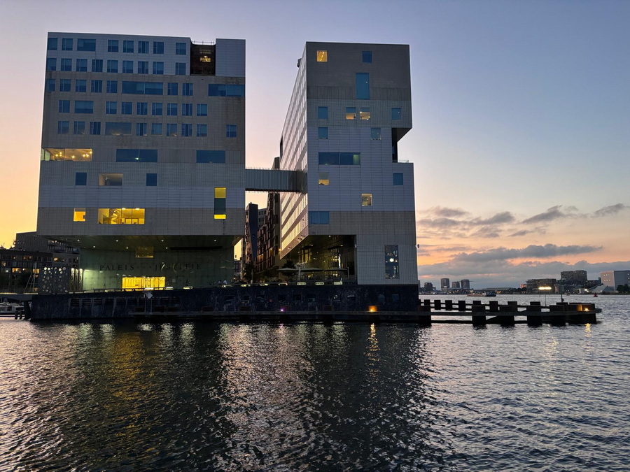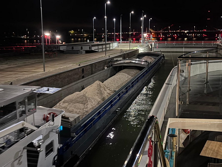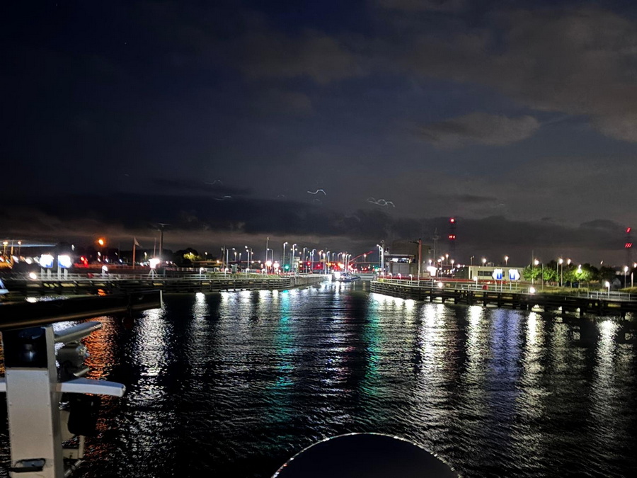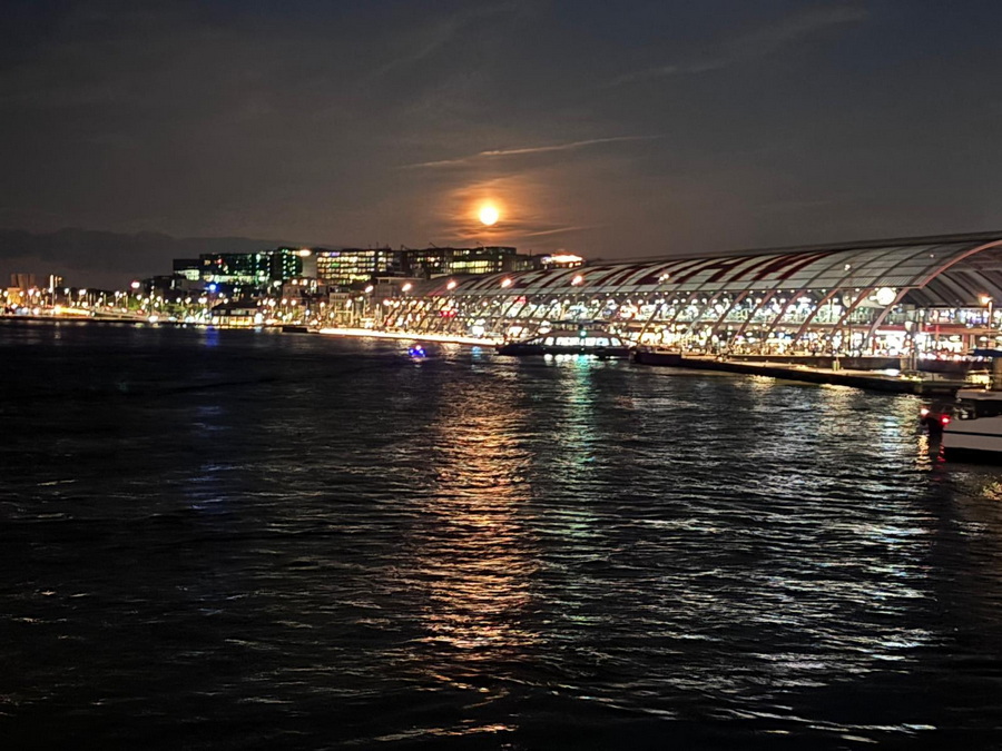 Flusskreuzfahrt MS Annika mit Margot, Teil 3 (Teil 1, Teil 2) Margot zeigt und schreibt: ![]() Bald schon machen wir uns auf den Rückweg. Dieser ist anspruchsvoll, da wir Straßen und Fahrradwege kreuzen müssen und ich die Augen für zwei offenhalten muss. ![]() Am Abend essen wir nicht im großen Speisesaal mit unserer festen Tischgruppe, sondern haben uns im kleinen Lido einen Platz gebucht und freuen uns über die ruhige Atmosphäre beim Essen. ![]() Kurz unterbrochen wurden wir durch diesen Riesen, der sich ins Bild schob. Darauf möchte ich nicht sein. ![]() Guten Appetit. ![]() Wir werden verwöhnt. ![]() Bei einem Spaziergang an Deck bewundern wir diese Wolkenformation. ![]() Hoch oben auf einem der Türme kann man in den Himmel schaukeln. Das ist nur für mutige und schwindelfreie Schaukler. ![]() Gegenüber unserer Kabine können wir das Justizgebäude im Abendlicht bestaunen. ![]() Nachdem wir den Abend unter Deck gesellig bei Musik, Tanz und Cocktails verbracht hatten, war die Abendstimmung auf Deck ein krönender Abschluss für den schönen Tag. ![]() ![]() Hinter der Bahnhofsrückseite ging der volle Mond auf. ![]() Damit sagen wir dem Lichtermeer von Amsterdam adieu und legen ab. ![]() Die Ausfahrt blieb spannend, denn es galt noch, weitere Hindernisse zu passieren. Hier fahren wir auf eine Art Schleuse zu, die jedoch nicht das Höhenniveau des Wassers reguliert. ![]() Ein weiteres Schiff wartete bereits auf die Weiterfahrt. ![]() ![]() Als wir in dieses "Abteil" einfuhren, stand am Anfang seitlich eine Fahrradfahrerin hinter einer verschlossenen Schranke und musste sich gedulden. Nach unserer Passage schob sich eine Art Schleusentür hinter uns, auf der sich der Radweg befand und über den die Radfahrerin dann ihrer Wege fahren konnte. Hinter uns schloss sich das Tor, während sich vor uns ein weiterer Radweg durchs Wasser schob und unseren Weg frei gab. ![]() Hier steht ein Ersatz Schiebeelement auf dem Trockenen. ![]() Freie Fahrt für unseren Nachbarn. [ wird fortgesetzt ] |