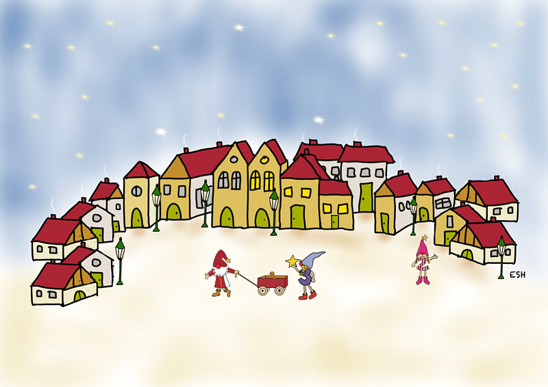 Wichtel Nummer 3 ... ... hat schon mal einen der Sterne vom Himmel geholt. Der wird dann ans Fenster gehängt, damit jeder, der vorbei kommt, diesen Stern sehen und bewundern kann. weiter