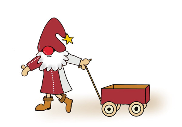 Nun guckt noch mal oben ins Bild ... da sind in dem Wägelchen vom Wichtel zwei