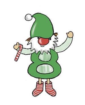 Wichtel Nummer 8 ... ... hat eine Zuckerstange in der Hand. Aber die wird zur Nebensache ... wenn man an die Füße guckt. Strümpfe im Zuckerstangenlook ... cool ;). weiter