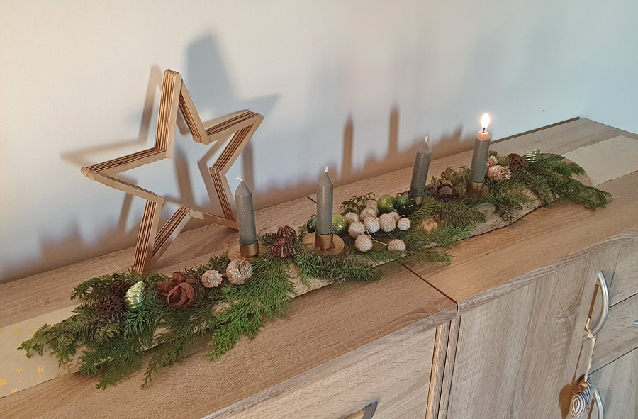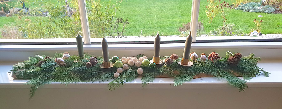 Verwendet hat Elfi Thujazweige und verschiedene Naturmaterialien und