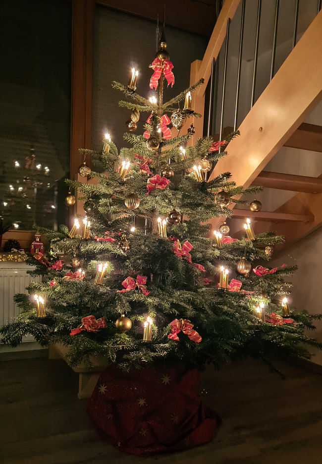 Weihnachtsbäume der Seelenfärbler Heute sind wir bei Christine L. zu Gast ... zuerst der Baum ohne Licht ... ... und nun schalten wir die Lichter an: weiter