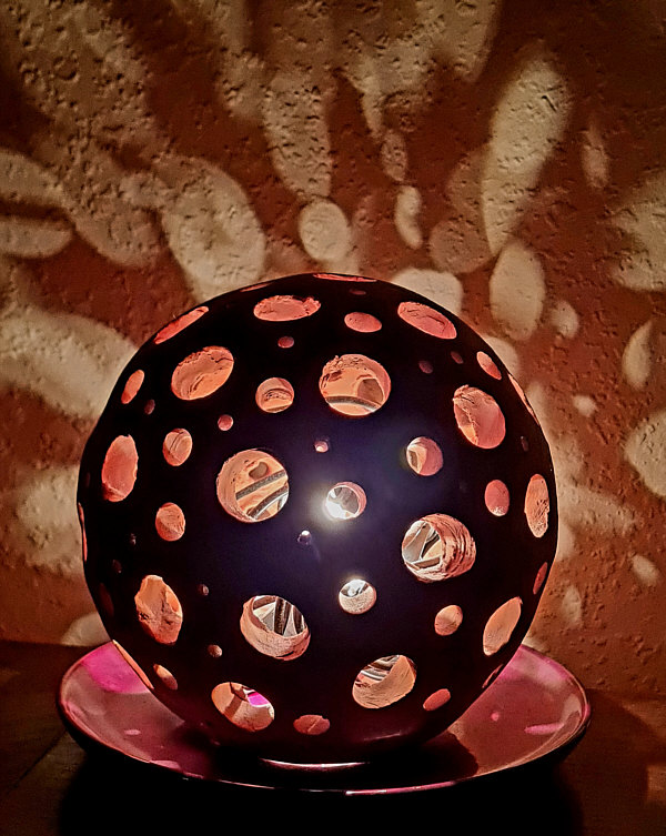 ... und die Kugel wirft dabei helle Lichtpunkte an die Wand.