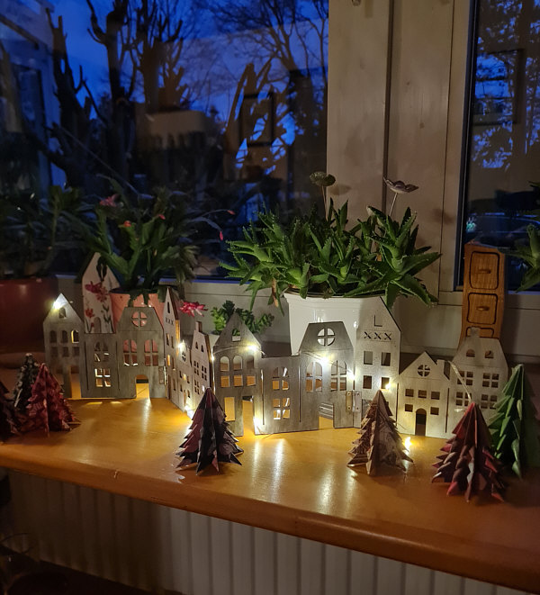 Ebenfalls selbst gemacht ist diese Häuserzeile am Fenster ...