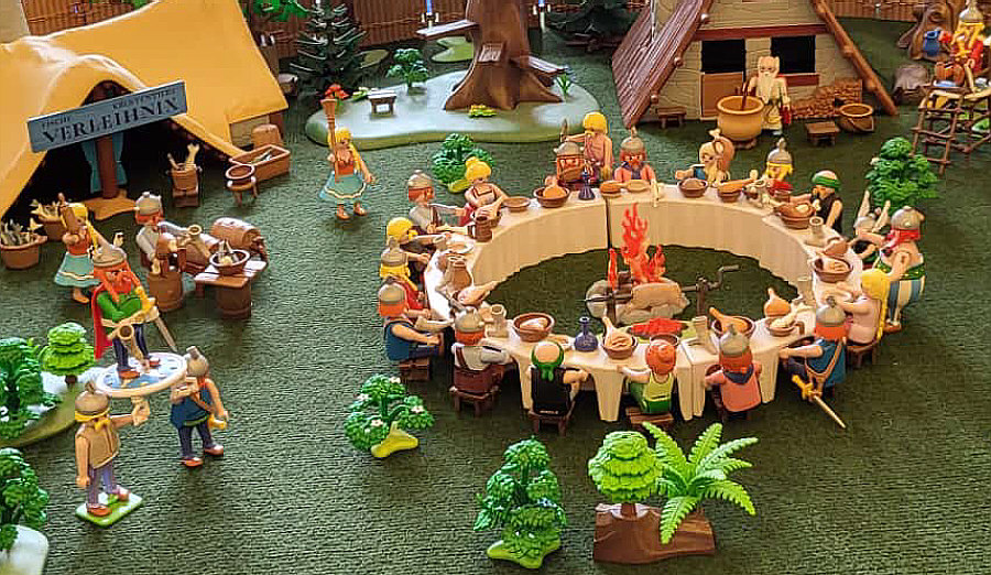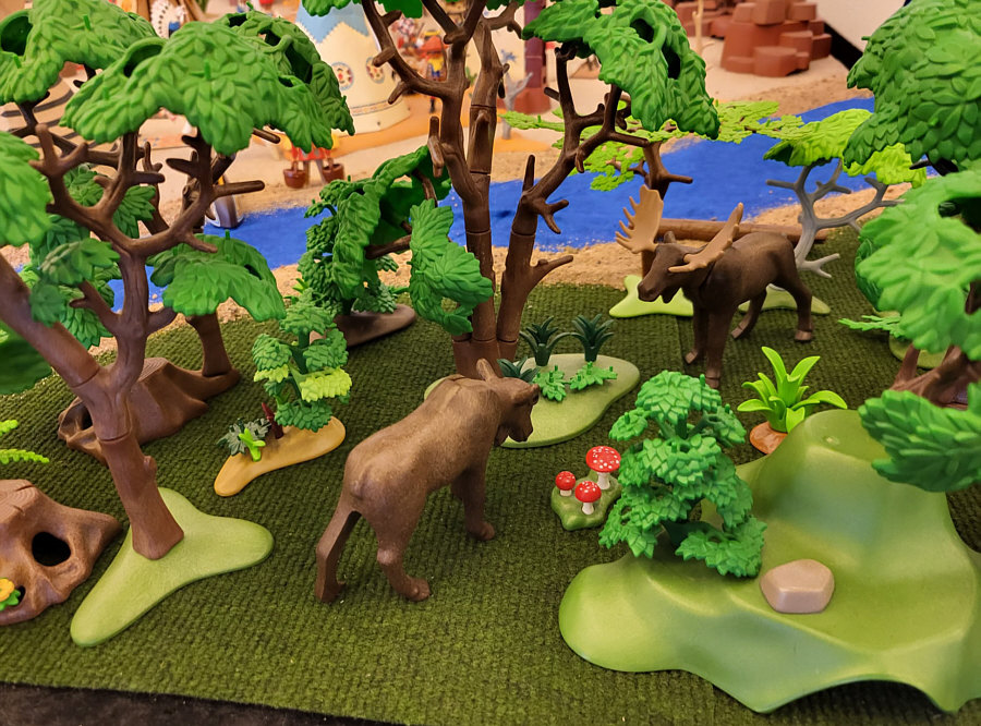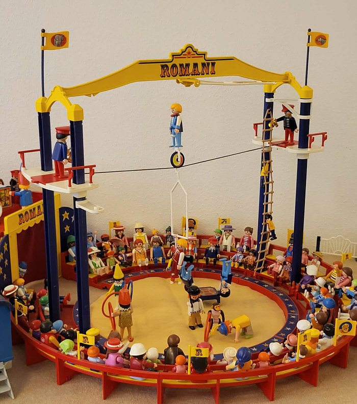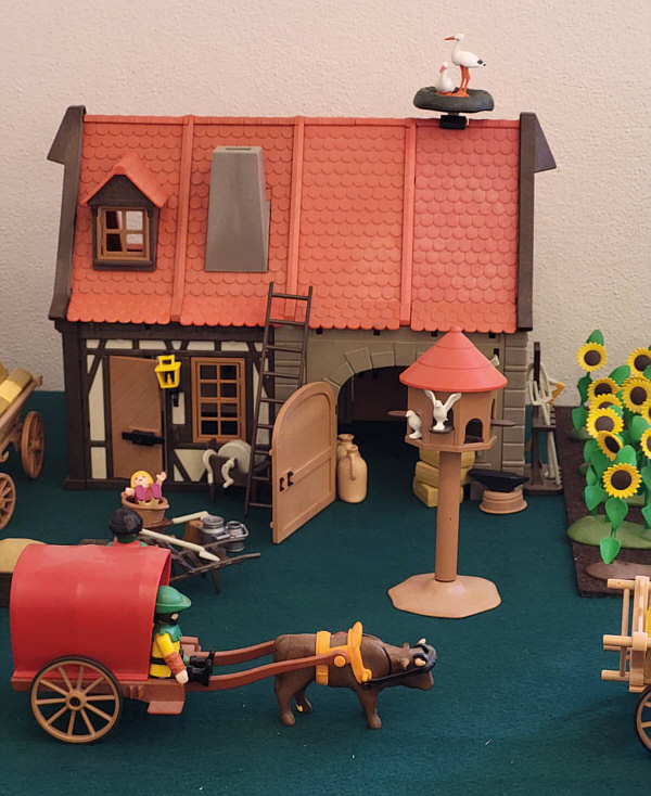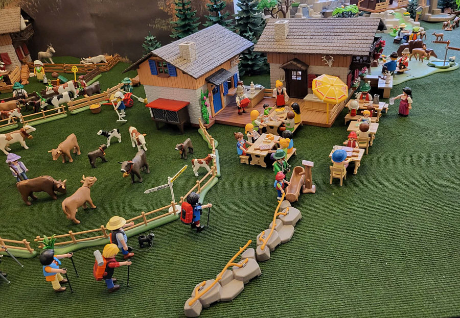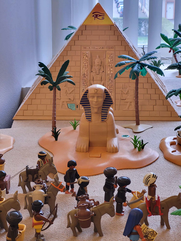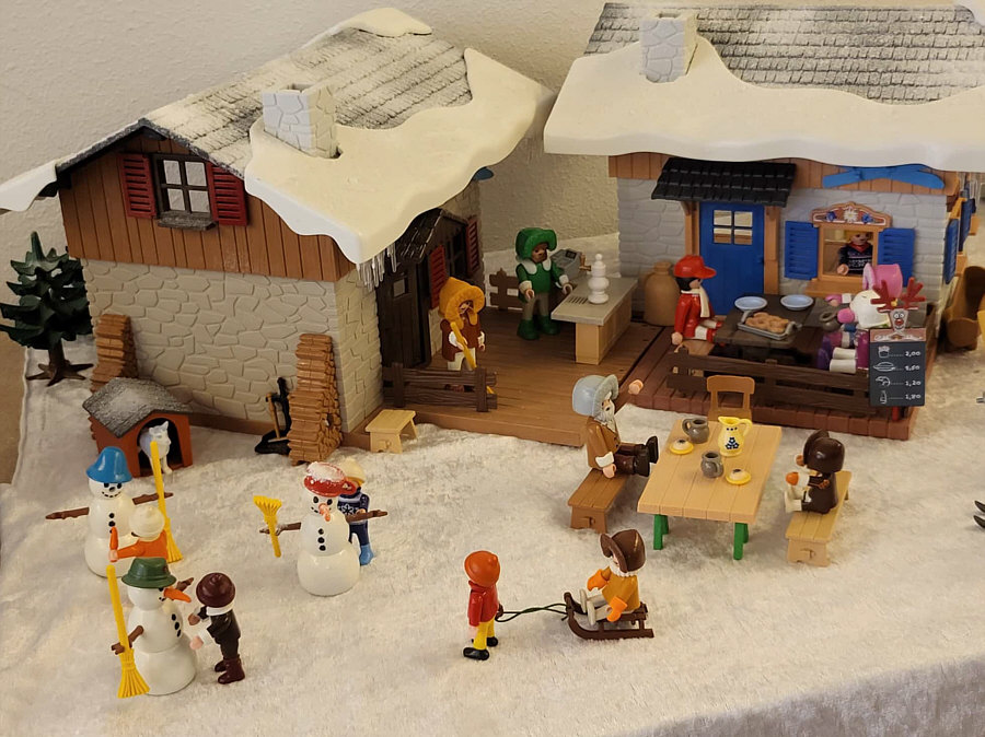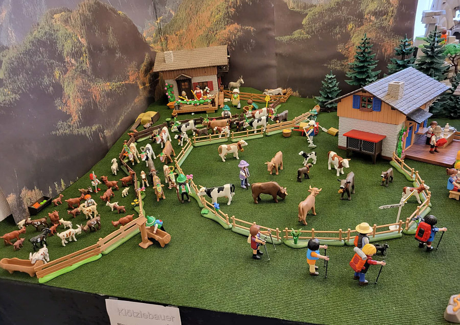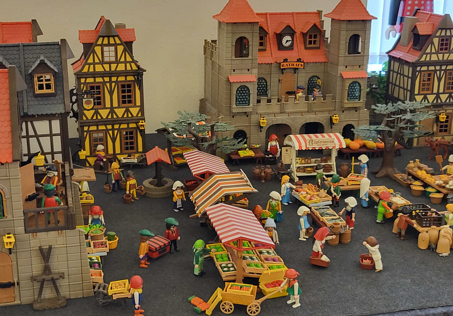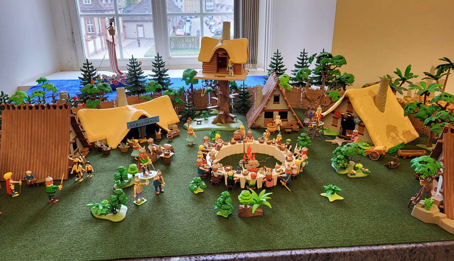 1974 ... war das ... und es begann mit Rittern, Indianern und Bauarbeitern. 7,5 cm groß. Aus Kunststoff. Menschenähnliche Spielfiguren. Diese wurden ein Welterfolg. Im Schloss Bruchsal ... ![]() ... sind viele davon zu sehen. Denn dort gibt es seit dem 25. Oktober 2025 (und noch bis zum 12. April 2026) die Ausstellung "Playmobil Kinderträume - Zeitreise für Familien". Satu war dort, hatte Bilder davon im Status und ich habe natürlich gleich "schick mir" gerufen ... das war Ende Oktober ... und nun ist es soweit, dass ich Euch mitnehme in eine kleine Reise in die Phantasiewelt der Kinder. Es ist unglaublich, in welcher Vielfalt es diese Figuren gibt und welche tollen Themenwelten man damit erschaffen kann. Nehmt Euch Zeit ... die Bilder sind voller liebevoller Details. Ein paar davon schreibe ich drunter, aber es gibt noch viele weitere zu entdecken. ![]() So sieht eine Figur aus ... das ist der Schornsteinfeger. ![]() Weihnachtsmann, Christkind und Nikolaus ganz stilecht. ![]() Weihnachtskrippe und die heiligen drei Könige. ![]() Fischerboot mit Möwen. ![]() ![]() Winterfreuden. ![]() Im Zirkus Romani. ![]() ![]() Im Zoo. WWF hilft. ![]() Rast auf der Alm mit vielen Tieren. Mit leckeren Schmankerln und Akkordeon. ![]() Und Weißwurst, Brezeln und Bier. ![]() ![]() Bauernmarkt. Mit kleinen Küken. ![]() Der Eimer mit den Golddukaten ist umgefallen, die Kinder freuen sich. ![]() So unglaubliche viele schöne Details. ![]() ![]() Auf dem Bauernhof. ![]() Die Mäuse haben den Käse entdeckt. Die Katzen haben die Mäuse entdeckt. ![]() Ritterburg. ![]() Im Mesozoikum ärgert der Skorpion den Dino. ![]() Viele verschiedene Dinos sind geschlüpft. ![]() Krokodile gibts auch. ![]() Die Neandertaler haben Fackeln und gehen Holz hacken ... die Tiere gehen mit. ![]() In der Oase gibts einen kleinen Seerosenteich. ![]() In Ägypten. ![]() Das Kamel bekommt sein Wasser. ![]() Im Wald bei den Wildschweinen. ![]() Eine Eule und Fliegenpilze gibts auch. ![]() Wo sind wir denn hier gelandet ? ![]() Bei Asterix und Obelix und den Wikingern. ![]() Hinten am Fluss im Wald. ![]() Der wilde Westen und die Indianer dürfen natürlich nicht fehlen. ![]() ![]() ![]() Sogar Autos gibts von Playmobil. Die Autos der Ghostbusters, dann das A-Team, James Bond, Knight Rider, Zurück in die Zukunft und Jurassic Park. Und das alles sind Playmobil-Figuren ... es ist der Wahnsinn ... :)). |