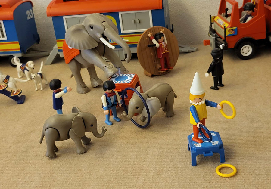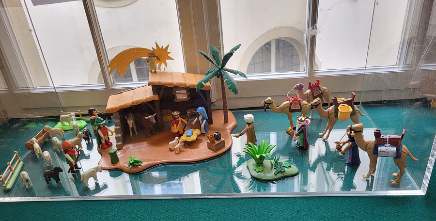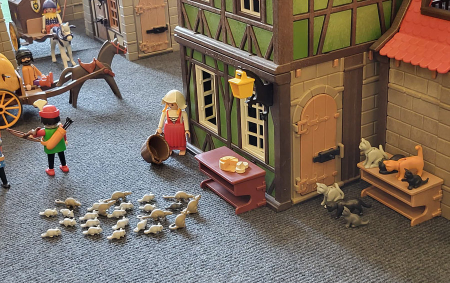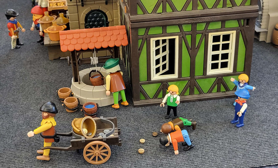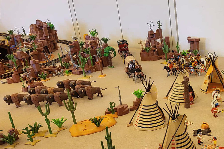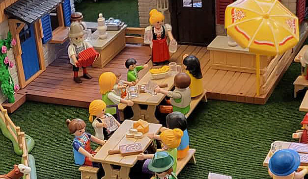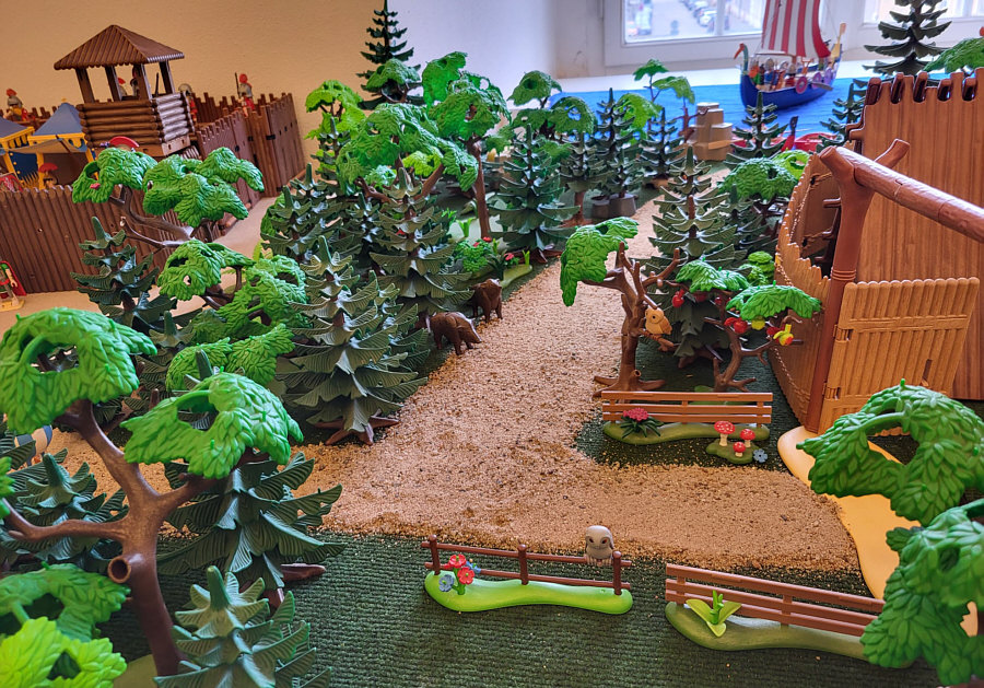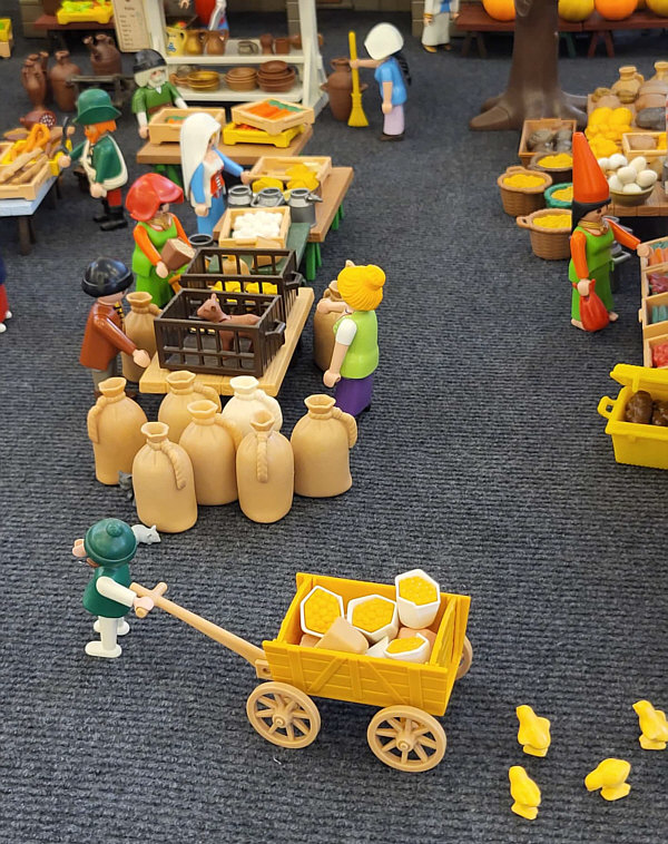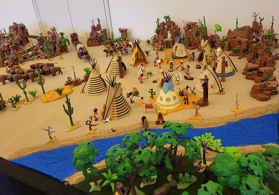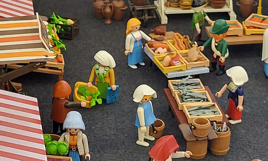 1974 ... war das ... und es begann mit Rittern, Indianern und Bauarbeitern. 7,5 cm groß. Aus Kunststoff. Menschenähnliche Spielfiguren. Diese wurden ein Welterfolg. Im Schloss Bruchsal ... ![]() ... sind viele davon zu sehen. Denn dort gibt es seit dem 25. Oktober 2025 (und noch bis zum 12. April 2026) die Ausstellung "Playmobil Kinderträume - Zeitreise für Familien". Satu war dort, hatte Bilder davon im Status und ich habe natürlich gleich "schick mir" gerufen ... das war Ende Oktober ... und nun ist es soweit, dass ich Euch mitnehme in eine kleine Reise in die Phantasiewelt der Kinder. Es ist unglaublich, in welcher Vielfalt es diese Figuren gibt und welche tollen Themenwelten man damit erschaffen kann. Nehmt Euch Zeit ... die Bilder sind voller liebevoller Details. Ein paar davon schreibe ich drunter, aber es gibt noch viele weitere zu entdecken. ![]() So sieht eine Figur aus ... das ist der Schornsteinfeger. ![]() Weihnachtsmann, Christkind und Nikolaus ganz stilecht. ![]() Weihnachtskrippe und die heiligen drei Könige. ![]() Fischerboot mit Möwen. ![]() ![]() Winterfreuden. ![]() Im Zirkus Romani. ![]() ![]() Im Zoo. WWF hilft. ![]() Rast auf der Alm mit vielen Tieren. Mit leckeren Schmankerln und Akkordeon. ![]() Und Weißwurst, Brezeln und Bier. ![]() ![]() Bauernmarkt. Mit kleinen Küken. ![]() Der Eimer mit den Golddukaten ist umgefallen, die Kinder freuen sich. ![]() So unglaubliche viele schöne Details. ![]() ![]() Auf dem Bauernhof. ![]() Die Mäuse haben den Käse entdeckt. Die Katzen haben die Mäuse entdeckt. ![]() Ritterburg. ![]() Im Mesozoikum ärgert der Skorpion den Dino. ![]() Viele verschiedene Dinos sind geschlüpft. ![]() Krokodile gibts auch. ![]() Die Neandertaler haben Fackeln und gehen Holz hacken ... die Tiere gehen mit. ![]() In der Oase gibts einen kleinen Seerosenteich. ![]() In Ägypten. ![]() Das Kamel bekommt sein Wasser. ![]() Im Wald bei den Wildschweinen. ![]() Eine Eule und Fliegenpilze gibts auch. ![]() Wo sind wir denn hier gelandet ? ![]() Bei Asterix und Obelix und den Wikingern. ![]() Hinten am Fluss im Wald. ![]() Der wilde Westen und die Indianer dürfen natürlich nicht fehlen. ![]() ![]() ![]() Sogar Autos gibts von Playmobil. Die Autos der Ghostbusters, dann das A-Team, James Bond, Knight Rider, Zurück in die Zukunft und Jurassic Park. Und das alles sind Playmobil-Figuren ... es ist der Wahnsinn ... :)). |