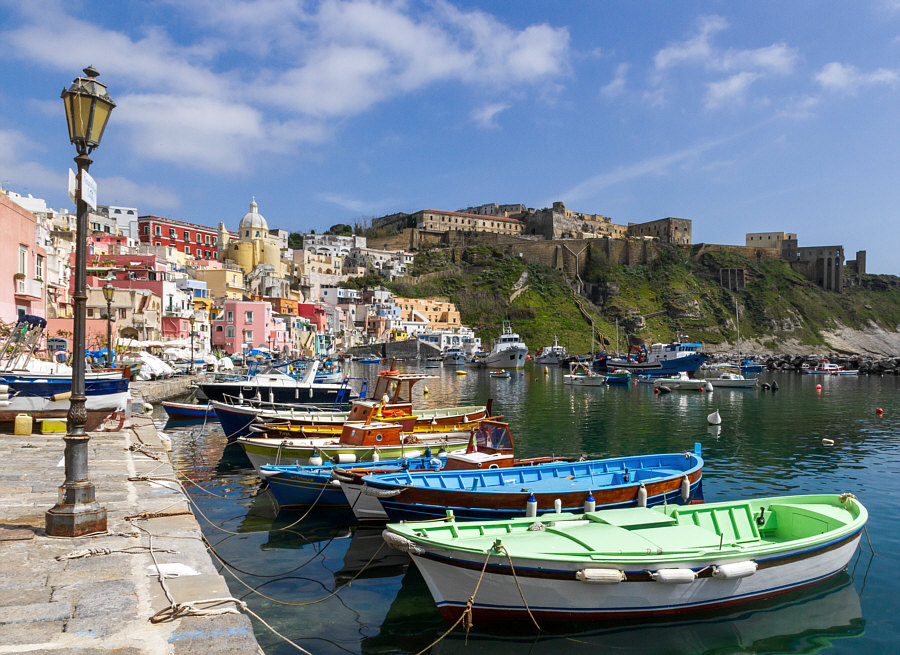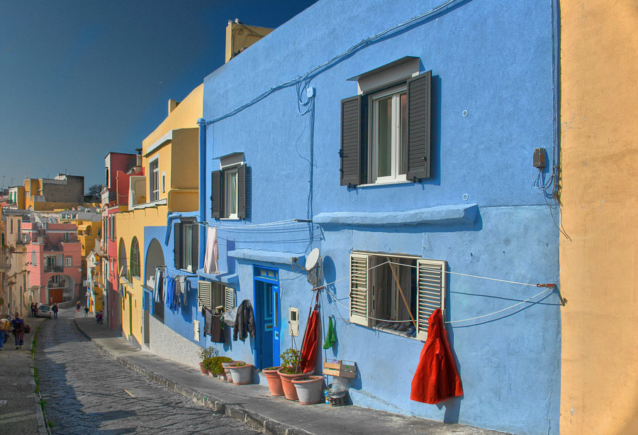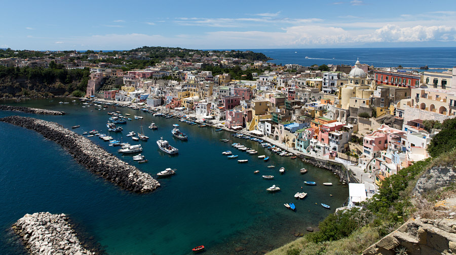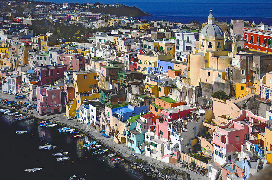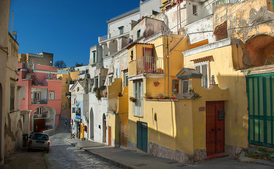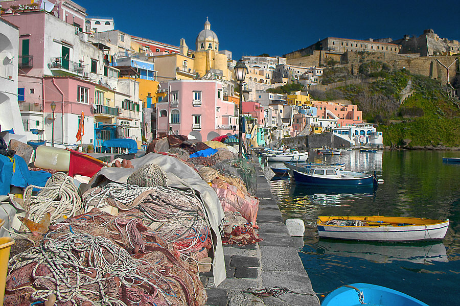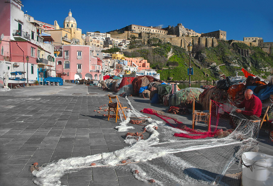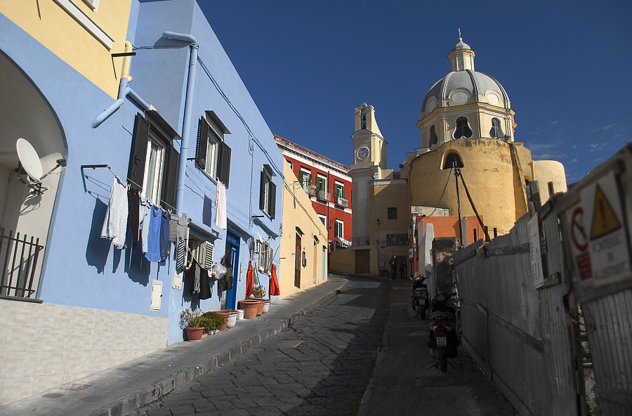 Italien ![]() Und dort ... ![]() ... dieser Bereich, wo auch Neapel liegt. ![]() Beim N liegt die Stadt Neapel und im Meer liegen zwei Inseln. Die größere etwas weiter draußen ist Ischia ... ![]() ... doch wir wollen heute auf die kleinere Insel dazwischen. Procida ist ihr Name ... die Insel ist nur ca. 2 x 2 km groß. Man kann die Insel nur per Schiff erreichen und darf als Tourist auch kein Auto mit auf die Insel nehmen. Und so ist diese Insel auch touristisch noch nicht überlaufen (wie z.B. Ischia). Der Hauptort der Insel heißt auch Procida. Ca. 10.000 Einwohner ist die Stadt groß. Sie gilt mit ihren Häusern in Pastelltönen als einer der schönsten Städte in Italien. Die Farben sind so aufeinander abgestimmt, dass zwei benachbarte Häuser kaum die gleiche Farbe haben, wodurch die Stadt ihr unverwechselbares Ambiente erhält. ![]() ![]() ![]() ![]() ![]() ![]() ![]() |