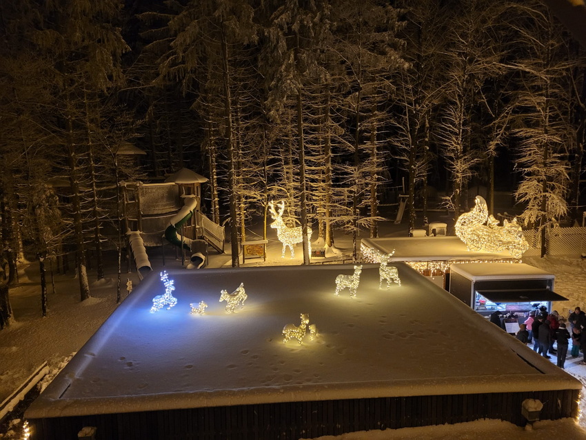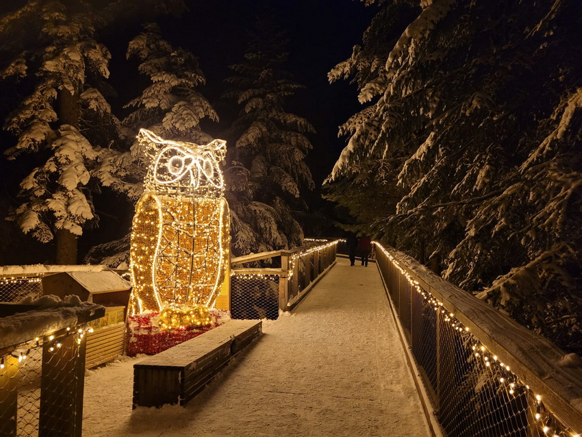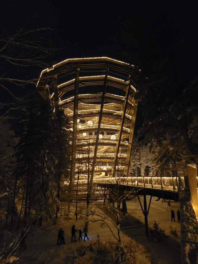 Baumwipfelpfad im Winter und das bei Nacht Wir sind im Schwarzwald im Bad Wildbad. Der Baumwipfelpfad befindet sich auf dem Sommerberg und führt über 1,2 km in bis zu 20 m Höhe durch den Wald. Es gibt einige Lern- und Erlebnisstationen und am Ende kommt man zum 40 m hohen Aussichtsturm, von dem aus man einen Rundumblick auf den Schwarzwald hat und, wer mag, kann auf der Tunnelrutsche im Inneren 55 m in die Tiefe rutschen. Von Ende November bis Mitte Februar findet dort ein Lichterzauber statt. Der Pfad und der Turm sind beleuchtet und es gibt auch einige tierische Lichtobjekte zu sehen. Pusteblume war dort ... sie hat dafür extra einen Tag mit Schnee ausgewählt, weil dieser eine ganz besondere Atmosphäre schafft. ![]() ![]() ![]() ![]() ![]() ![]() ![]() ![]() ![]() Die Tunnelrutsche im Inneren, die 55 m in die Tiefe geht: ![]() ![]() |