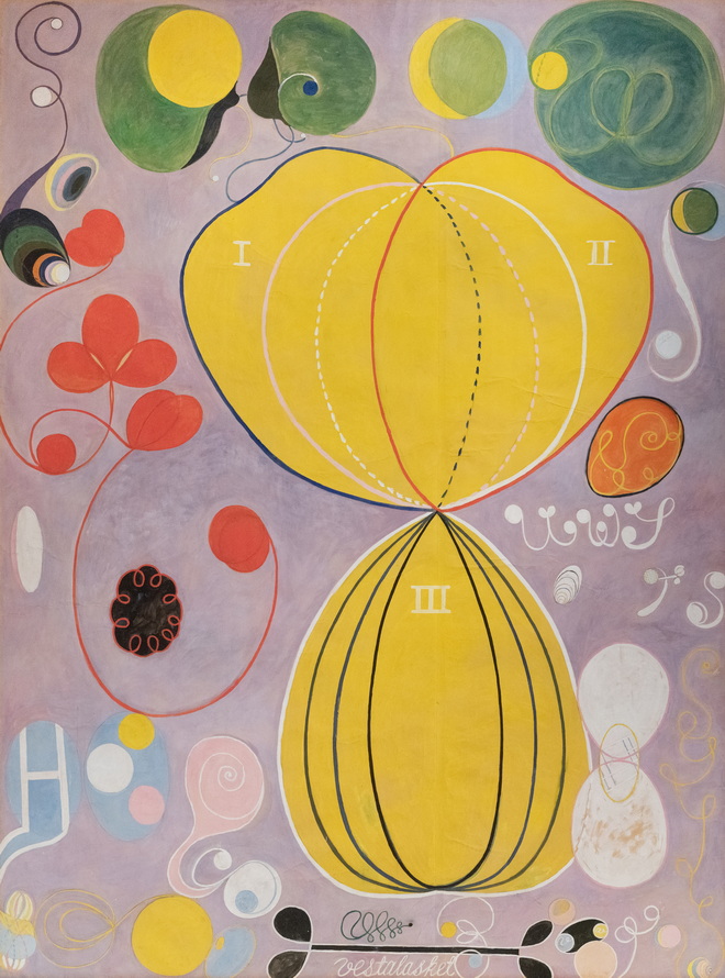 ![]() Man sieht es ihr nicht an ... ... aber dies ist eine Pionierin der abstrakten Malerei und gilt als eine der hervorragenden Malerinnen des frühen 20. Jahrhunderts. Sie hat ihr Gesamtwerk zeitlebens nie ausgestellt und verfügt, dass es frühestens 20 Jahre nach ihrem Tod ausgestellt werden darf. Erst in den 1980er-Jahren wurden ihre Werke international bekannt und anerkannt. Das ist Hilma af Klint eine schwedische Malerin, die 1862 geboren und 1944 gestorben ist. Sie hat ganz tolle Kunstwerke erschaffen: ![]() Altarbild Nummer 1, Gruppe X (1907) ![]() Die Taube, Nummer 1 (1915) ![]() Der Schwan, Nummer 10 (1915) ![]() Der Schwan, Nummer 18 (1915) Und dann gibt es noch die Bilderreihe "die zehn Größten". 1907 hatte Hilma eine Vision, die die Entstehung von "zehn paradiesisch schönen Gemälden" voraussagte, welche der Welt einen Einblick in die verschiedenen Lebensabschnitte (Kindheit, Jugend, Erwachsenenalter und Alter) gewähren würden. Einen Monat darauf begann sie mit der Arbeit an diesen zehn großformatigen Bildern, die jeweils 240x320 cm groß sind. Aufgrund der Größe entstanden diese Bilder wahrscheinlich auf dem Atelierboden - ganz anders als die damaligen Konventionen der Staffeleimalerei. Die Bilder hängen ... ![]() ... im Guggenheim-Museum in New York. Ich zeige diese 10 Bilder natürlich auch einzeln: ![]() Kindheit 1 ![]() Kindheit 2 ![]() Jugend 1 ![]() Jugend 2 ![]() Erwachsenenalter 1 ![]() Erwachsenenalter 2 ![]() Erwachsenenalter 3 ![]() Erwachsenenalter 4 ![]() hohes Alter 1 ![]() hohes Alter 2 Heute im Portrait: Hilma af Klint |