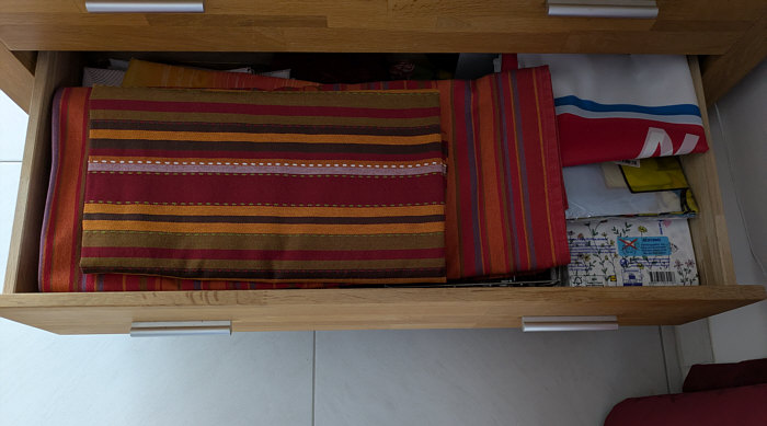 Willkommen bei der dritten Bilder-Mitmachaktion Teil 2 Die Überschrift: Indoor-Fotografie. Es gibt immer wieder eine neue Aufgabe. Die Aufgabe war: "fotografiere im Wohnzimmer deinen größten Schrank" mit dem Zusatz "Schicke mir das Bild ... ich werde dich dann bitten, ein ganz bestimmte/s Fach/Schublade zu öffnen und mir zu zeigen und zu sagen, was dort drin ist." Sensationell ... von den 16 Seelenfärbler/innen, die mir ein Schrankbild geschickt hatten, haben fast alle auch das Fach oder die Schublade geöffnet und zeigen, was drin ist. Bis auf eine Seelenfärblerin, die meinte, ich hätte das falsche Fach ausgesucht, dort wären nur Zeitschriften und alte Kataloge drin ... hey, es gibt doch kein falsch oder richtig, sondern nur Glück und Pech und Zufall, welches Fach ich spontan gerade ausgesucht hatte. Aaalso ... ich darf nun 15 Schränke auflösen ... freu :)). Meinen eigenen Schrank hatte ich auch im Tagebuch gezeigt ... ![]() ... und gebeten, zu kommentieren, welches Fach ich öffnen soll. Ich hab dann unter allen Kommentaren einen ausgelost ... ![]() ... und der Kommentar Nummer 2 war dieser: ![]() Und, oh so sorry ... es tut mir wirklich leid ... diese Schublade ... ![]() ... ist leider leer. Da waren bis Ende Januar die Weihnachts-Bücher und Zeitschriften drin, die habe ich, weil ich doch nicht reingeschaut habe, dann rausgenommen und an Beate zum Sichten und Aussortieren weitergegeben. Und so ist die eine Schublade mit den zwei Fächern im Moment leer, so lange, bis ich mich entschieden habe, was ich dort nun reinlege. Falls jetzt jemand denkt ... ganz sicher hätte ich so lange eine Zahl generieren lassen, bis diese Schublade dran ist ... ah Schmarrn ... ich hab kein Problem damit, den ganzen Schrank mit geöffneten Türen zu zeigen: ![]() Jetzt aber zu den Seelenfärbler-Schränken ... zuerst der Schrank, dann die Auflösung. Und jetzt sogar mit Namen. 1 ![]() ![]() Schnecke schreibt: "Eine typische Krusch-Ecke :)" --- 2 ![]() ![]() Xenophora schreibt: "Es sind meist nur Teller und Schüsseln. Und ein kleiner Glaskrug, den mir mal eine Nachhilfeschülerin geschenkt hat. Besonders hänge ich noch an dem Wagenfeld Salz- und Pfefferstreuer aus der WMF, den ich mir vor 60 Jahren mal selbst gekauft habe." --- 3 ![]() ![]() Ladybird schreibt: "Bitteschön, die "Kerzenschublade" - Teelichter, Haushaltskerzen, Pyramidenkerzen, Weihnachtsbaumkerzen, Geburtstagskerzen, Teelichthalter, Streichhölzer ... und Holzbuchstaben zum Basteln". --- 4 ![]() ![]() Liane schreibt: "der Schrank war mal der Kleiderschrank meiner Urgroßmutter. Ich hab dann Einlagebretter montiert und ihn zum Bücherschrank umfunktioniert. Er platzt bald aus allen Nähten, die Bücher stehen schon in Zweierreihen." --- 5 ![]() ![]() Therese schreibt nix weiteres dazu ... ist vielleicht selbsterklärend ;). --- 6 ![]() ![]() Christine R schreibt auch nix, aber man sieht, dass das das Geschirrfach ist. --- 8 ![]() ![]() ![]() ![]() Karen schreibt: "da hast Du Dir mit sicherem Griff das langweiligste Fach im Schrank ausgesucht! In der Schublade liegen Servietten, ein Päckchen mit Teelichten und Schmuckbänder für verschiedene Anlässe. Von den 6 Bändern habe ich 4 selbst bestickt, nur die Weihnachtsbänder sind gekauft. Die Bänder kommen auf den festlich gedeckten Tisch - drunter natürlich ein Tischtuch, das dann "nicht" gemustert sein sollte. --- 9 ![]() ![]() Greta schreibt: "da hast Du Dir ja die versteckteste Schranktüre ausgesucht, ich musste erst mal "Möbel schieben", um hinzukommen. In dem Fach stehen Schalen und Vasen, die ich nur noch sehr sehr selten nutze. Dahinter sind einige Schallplatten verborgen, wie es aussieht sind es Opernaufnahmen. --- 10 ![]() ![]() Lieserl schreibt: "Links sind Tischdecken. Für Wohnzimmer und Esszimmer, darum unterschiedliche Formate. Rechts unten Servietten und oben eine FC Bayern-Fahne und drunter eine neue Freistaat Bayern Fahne. Beide für den Fahnenmasten im Garten. Wenn jetzt wärmer wird, kommt die FCBfahne wieder raus. Und wenn die Saison vorbei ist, die Freistaat Bayern Fahne" --- 11 ![]() ![]() Ingolf: "... da hast Du eine gute Wahl getroffen, dieses Fach ist vorzeigbar ;-). Im Fach befinden sich überwiegend Sammeltassen, alles Erbstücke unserer Mütter. Sie sind nicht allzu oft im Einsatz, aber eine größere Kaffeetafel mit weißer oder einfarbiger Tischdecke und den Tassen sieht schon hübsch aus. Der Schrank stammt übrigens noch aus DDR-Zeiten, eine Arbeit unseres ortsansässigen Tischlers, auf die wir 10 Jahre warten mussten." --- 12 ![]() ![]() Gudrun aus der Oberlausitz schreibt: "Das ist mein Büchertisch-Schrank. In unserer Gemeinde bin bzw war ich für den (Weiter-)Verkauf von Büchern, Karten, CDs uä zuständig. Deshalb hab ich jede Menge Kataloge von verschiedenen Buchverlagen. Außerdem müssen die Rechnung u Gutschriften u das eingenommene Geld irgendwo gelagert werden. Dafür ist hier ausreichend Platz." --- 13 ![]() ![]() Mira I schreibt: "Da rufen viele Papiere: "Hol mich hier raus" !!!!! - Vielleicht kannst du das Flehen hören ..." --- 14 ![]() ![]() ![]() Onyxia schreibt: "Normal ist das meine Deko-Schublade, da steht sonst noch die Glasschale vom Couchtisch drin. Jetzt müssen die "Restchips" von meinem Geburtstag noch mit rein ..." --- 15 ![]() ![]() Belo schreibt nix dazu ... hat aber noch dieses Bild beigelegt: ![]() Zur Info ... die Kronjuwelen-Konfirmation feiert man 75 nach der eigentlichen Konfirmation. --- 16 ![]() ![]() Lieschen schreibt: "wer A sagt muß auch B sagen ... nun kommt mein Schrank, deine ausgewählte Türe zum Anschauen nun innen. Da ich schon immer gerne und viel fotografiert habe, siehst du meine Alben, damals wurde ja nur mit Film geknipst und dann die Bilder ins Album. Hier von links die ersten, ungefähr 1/4 siehst du. Die werden noch oft raus geholt und nachgeschaut, was war wann ? weißt du noch ? Ist so sehr praktisch, ob man die digitalen Bilder auf dem Handy, sollte mal was bestimmtes gesucht werden, 