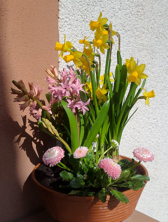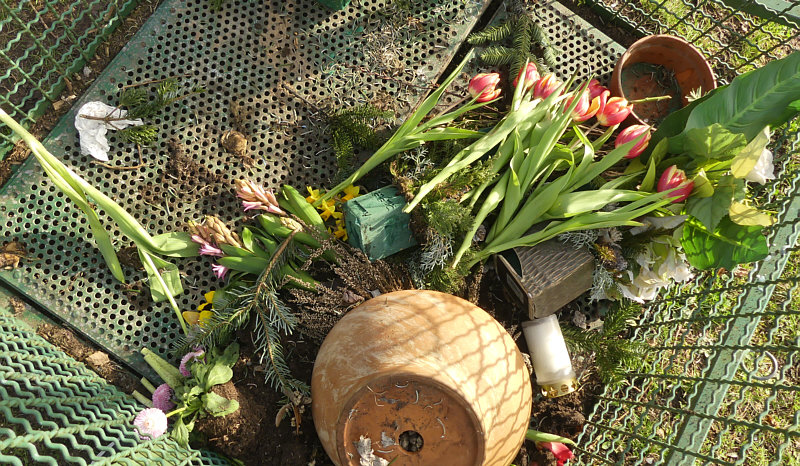 Hier erzähle ich, wie die Geschichte aus dem Tagebuch weiter ging. Noch mal zur Erinnerung und für die, die im Tagebuch nicht lesen ... ... darum ging es: ![]() Das ist ein Drahtkorb für Abfälle aller Art auf einem Friedhof ... da darf man alles, was man entsorgen will, rein werfen ... und so sah das in einem der Körbe aus: ![]() Bellis, Hyazinthen (noch nicht mal ganz aufgeblüht), kleine Osterglocken, ein Tulpenstrauß ... ... da wurde einfach ein Pflanzschale reingeworfen und hat das, was in ihr stand und blühte, begraben. Beate sieht das ... schüttelt den Kopf ... aber wir waren ja auf einem Spaziergang und konnten nichts mitnehmen. Aber es tat uns beiden in der Seele weh ... die Tulpen ... ![]() ... die Hyazinthen, die noch gar nicht aufgeblüht waren ... ![]() ... und auch die kleinen Osterglocken. Ich bin dann später nochmal mit dem Auto hingefahren ... und nun gabs ein anderes Problem. Du kommst nicht ran. Du kannst dich drüber beugen, aber die Hände reichen nicht runter. Das Ding kann man auch nicht öffnen. Du kommst nicht dran ... kannst nix greifen und rausholen ... was nun ? (Ende des Tagebucheintrages) Und so gings weiter ... ... ich bin ans Auto und haben meinen Rückenkratzer geholt. Mir fiel grad nicht anderes ein ... der ist ausziehbar und hat gabelähnliche Zinken. Aber damit gings auch nicht. Kurz haben wir überlegt, eine in der Nähe stehende Bank zu nehmen und neben den Abfallbehälter zu stellen und vor dort aus reinzusteigen. Aber wie kommt man dann wieder raus ? Pech gehabt ... seufzend hatten wir uns schon entschieden, unverrichteter Dinge zum Auto zurück zu gehen ... ... da packt Beate der Wahnsinn (oder so ;)) ) und sie drückt mit Kraft gegen den ganzen Behälter ... ... und schafft es tatsächlich, ihn umzukippen. Nun war es ein leichtes, an die Pflänzchen zu kommen. Daheim die Tulpen erstmal schnell ins Wasser gestellt ... ![]() ... und die anderen Pflanzen auch ... ![]() ... eine Salatschüssel musste als Notquartier dienen. Schaut man, wie das Tausendschön (Belli) so arm da hängt: ![]() Das war am Samstag. Und gestern ? Da kamen die Tulpen in eine Vase ... ![]() ... und wenns nur noch für 1-2 Tage ist. Alle anderen Blumen wurden in eine Schale gepflanzt ... ![]() ... die nun vor unserer Haustüre steht. Sogar das Belli hat sich erholt. Ihr könnt jetzt gerne sagen "macht man nicht" oder auch "darf man nicht, ist Diebstahl". Da stehen wir drüber ... und da stehe ich auch voll und ganz hinter Beate und finde das in Ordnung, was und wie sie es getan hat. Ich wäre seufzend vorbeigelaufen ... aber Beate eben nicht. Also: Wir würden es wieder tun. Und wir werden es auch wieder tun, wenn uns das noch mal begegnet, dass so schöne Pflanzen einfach entsorgt werden. PS: Es geht uns nicht darum, umsonst an Pflanzen zu kommen, sondern Originalton Beate: "Pflanzen haben ein Recht zu leben". |