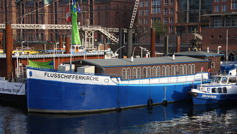 Die "Flussschifferkirche", die normalerweise in Hamburg liegt, aber im Jahr 2009