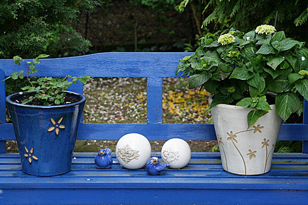 steht diese Bank und wartet darauf, dass die Rhododendren blühen.