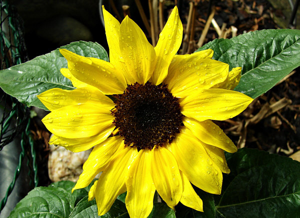 dass sie als kleinen Gegenpol eine Sonnenblume fotografieren sollte.
