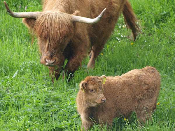 zum ersten Mal auf die Weide durften ... auch das Kälbchen, das erst ein paar