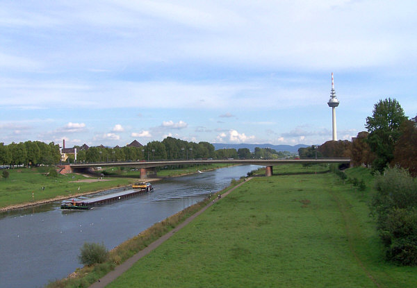 ... Mannheim ... mit dem Fernsehturm, dem Neckar, dem Rhein,