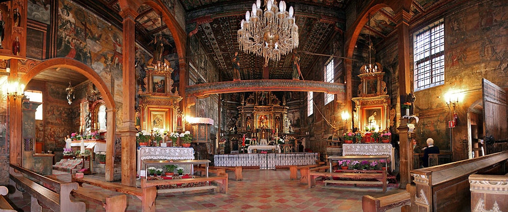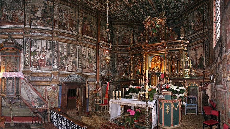 eine der Holzkirchen, die im südlichen Polen zu finden sind.