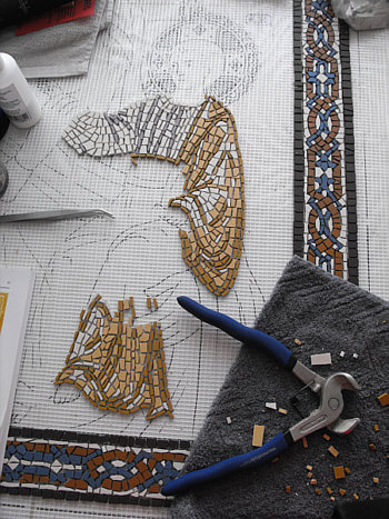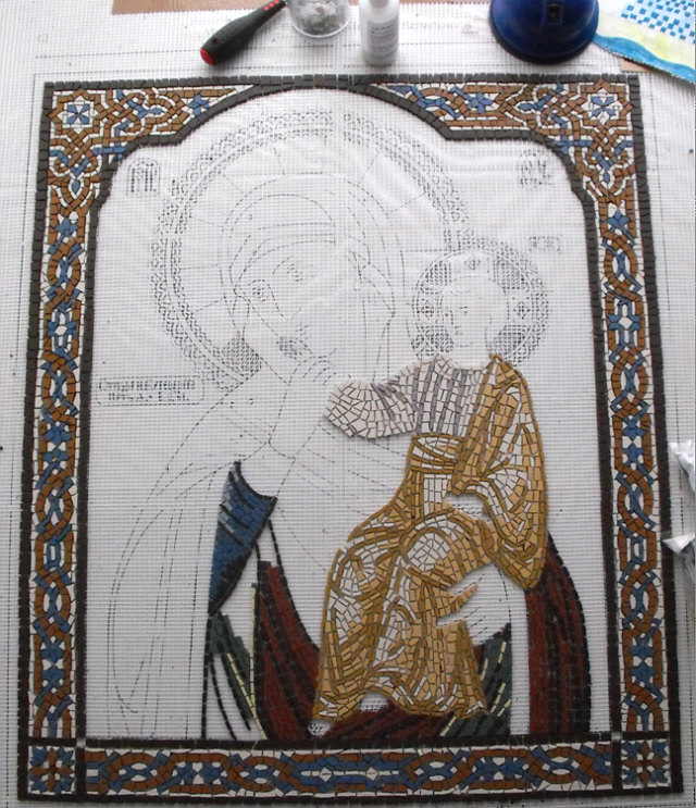 Eine Ikone aus Mosaiksteinen, an der Annemone gerade arbeitete.