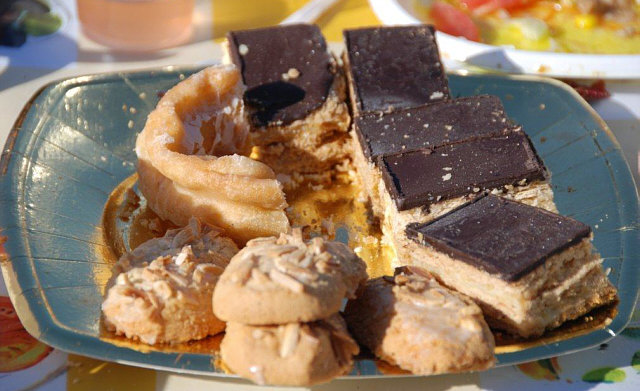 Ich zeig Euch mal den Tisch mit all den Leckereien, die es so gibt: