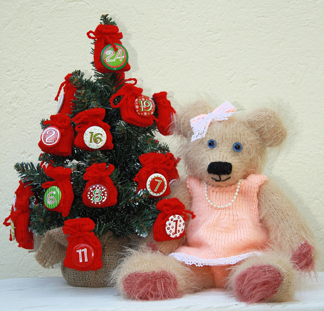 als auch die Säckchen vom Adventskalenderbaum selbst gestrickt.