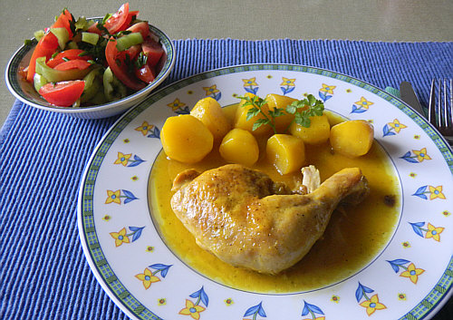 Goldenes Huhn mit Kartoffeln - Mandel-Tiramisu