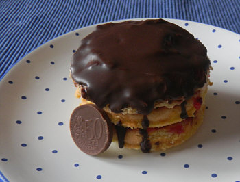 Auf diese kommt wieder Creme und darüber eine Schokoladenglasur.