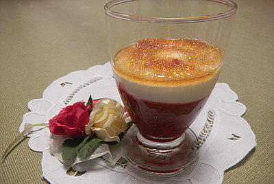 Die Creme vorsichtig über die Himbeeren verteilen.