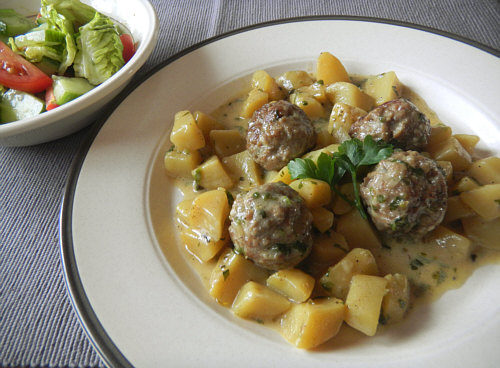 Vor Ende der Garzeit Fleischbällchen wieder dazu geben.