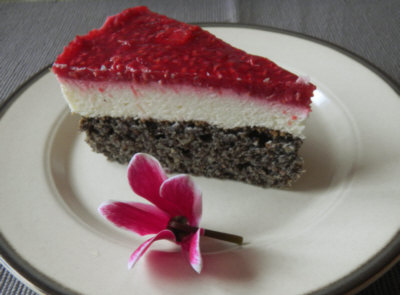 Schichtsalat-Torte - Mohn-Quark-Torte mit Himbeerspiegel