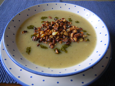 Erdäpfel-Sellerie-Suppe mit Pesto