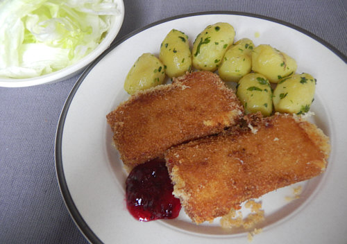 Gebackenen Käse mit Petersilkartoffeln (für Linas Mann)