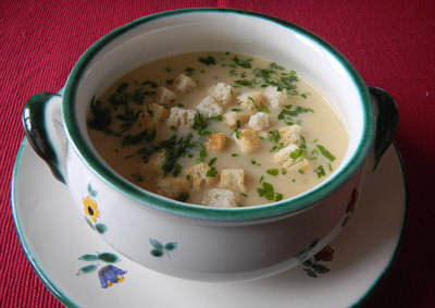 mit gerösteten Semmelwürfel und Petersilie anrichten.