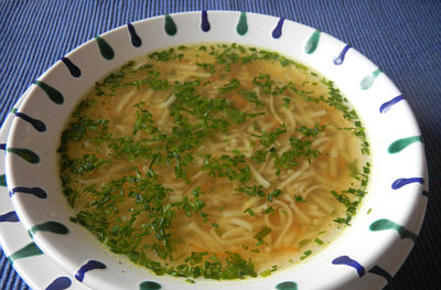 Grießnockerlsuppe - Faschiertes Bällchenragout mit Salat