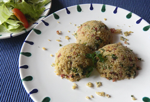 den Couscous gemischt, 2 EL gehackte Petersilie dazu gegeben