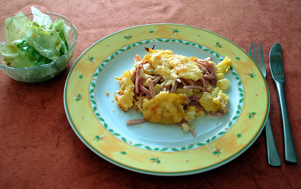 Kartoffel-Schinkel-Auflauf, Blattsalat