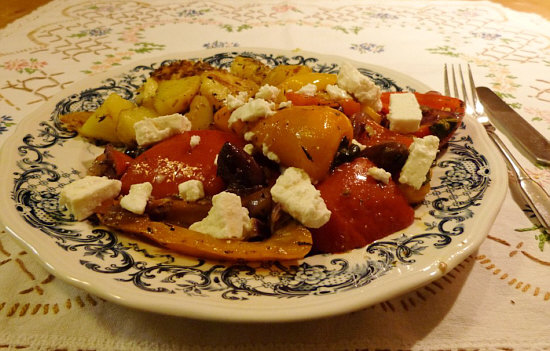 Mediterranes Paprikagemüse und Röstkartoffeln