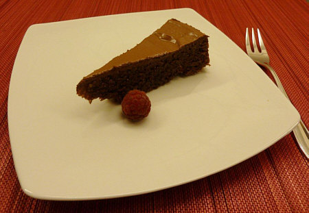 leckersten Schokokuchen mit Himbeerchen. Soweit ich weiß mehlfreien Kuchen.