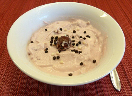 Ein kleines Glas Sauerkirschen mit Zucker nach Geschmack aufkochen.
