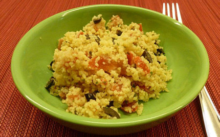 200g Couscous ungegart mit 8 EL Zitronensaft (ca. 2 Zitronen) und